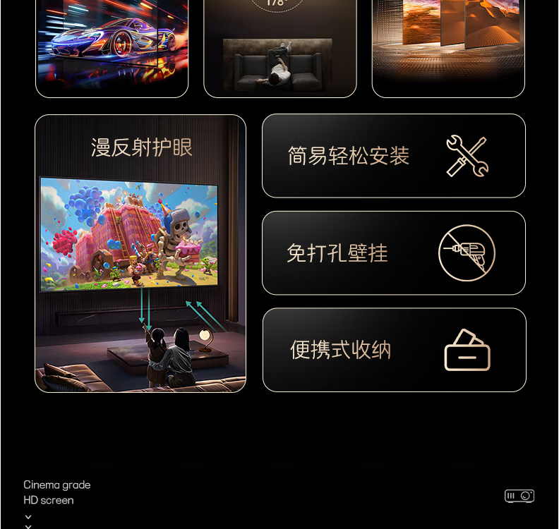 真心不错,安装简单,幕布材质好,抗光性能出 色,画面清晰细腻,材质坚固耐用,色彩还原度高