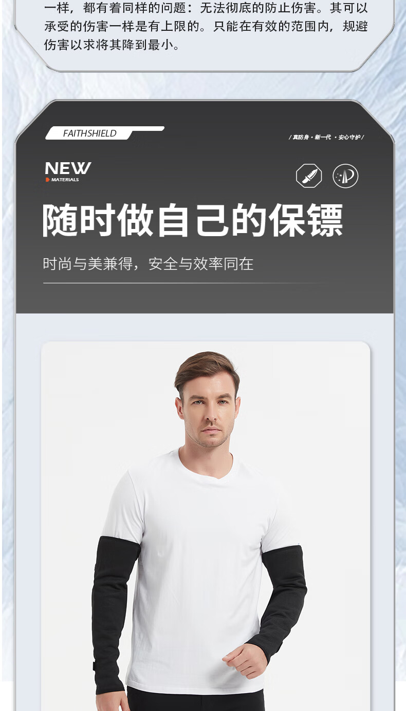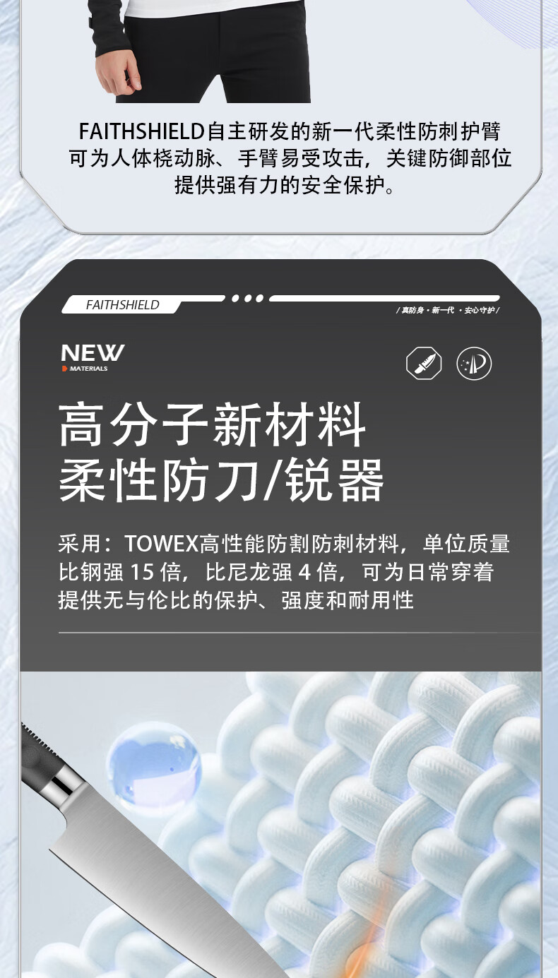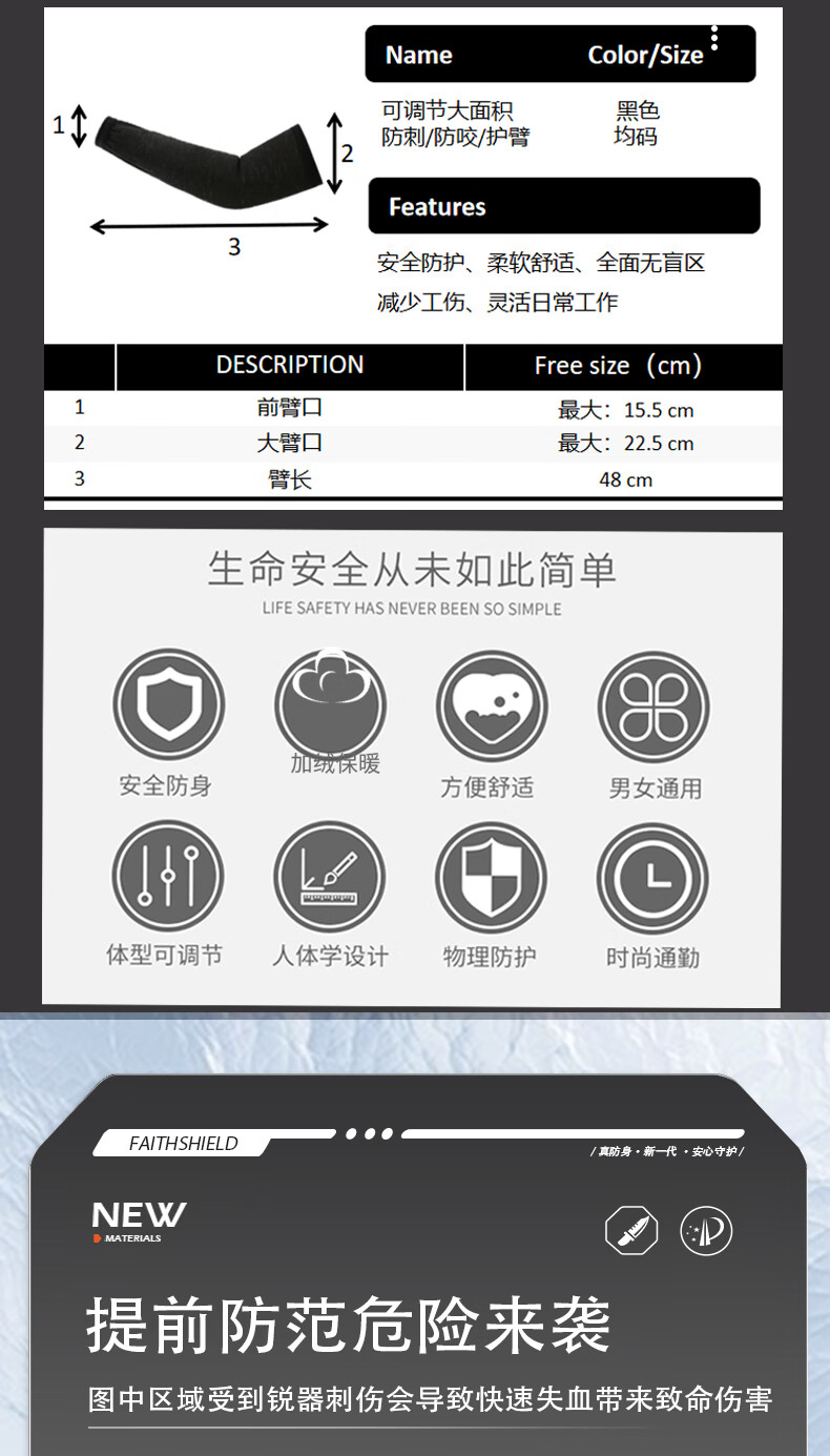 Faith Shield手臂防护耐宠物撕咬手肘防护防刺柔软舒适袖套防金属玻璃军迷用品 黑色