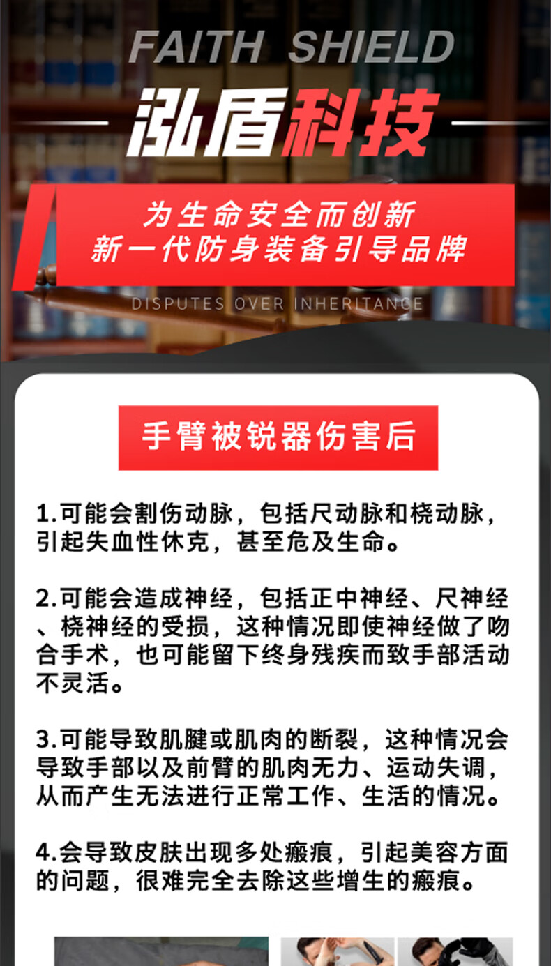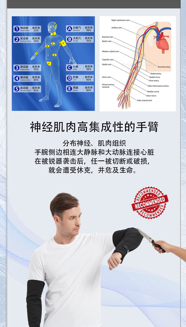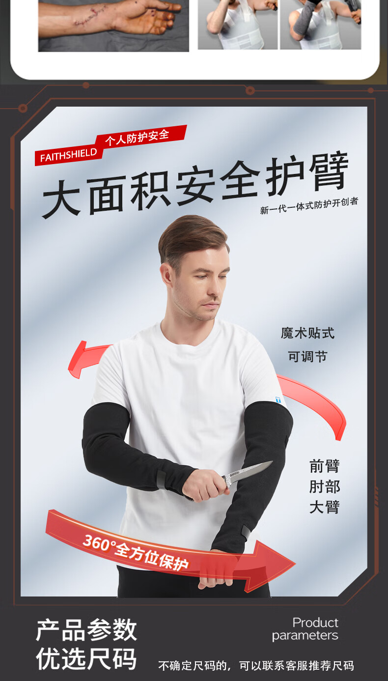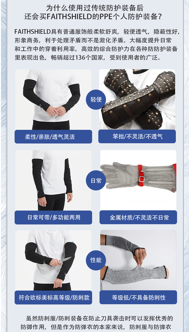 Faith Shield手臂防护耐宠物撕咬手肘防护防刺柔软舒适袖套防金属玻璃军迷用品 黑色