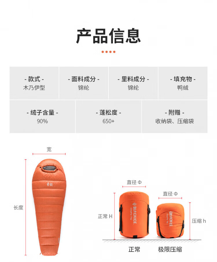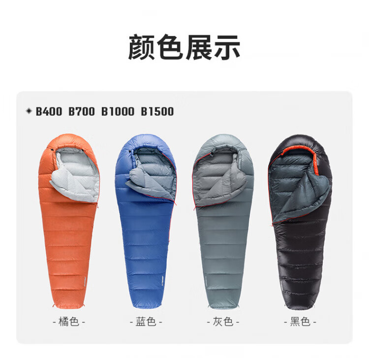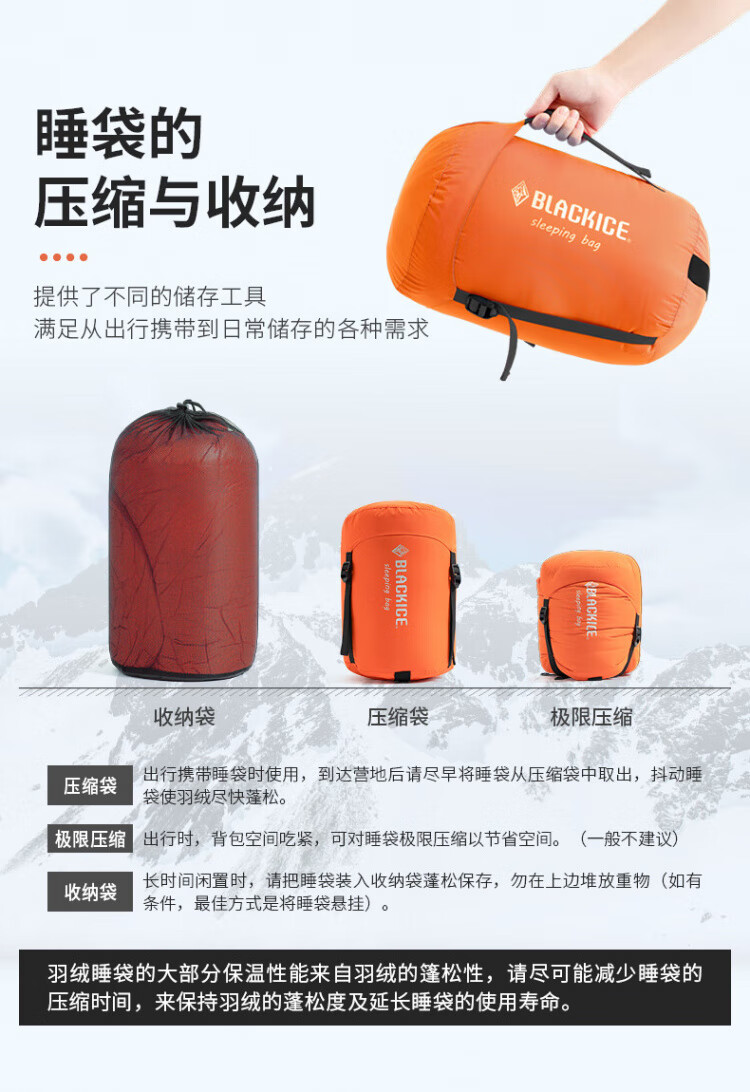 黑冰(BLACKICE)户外保暖露营B700系列轻量鸭绒睡袋秋冬季成人睡袋木乃伊单人睡袋 黑色 B400(新标准) M码