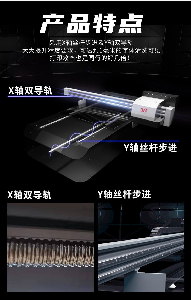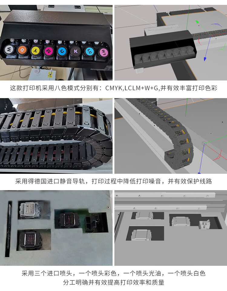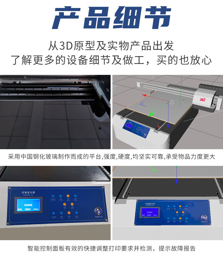 这款设备很万能,打印面积也大打印机很智能,在电脑上设计好图案,就可以进行自动打印,打印的速度、精度、效果都不错