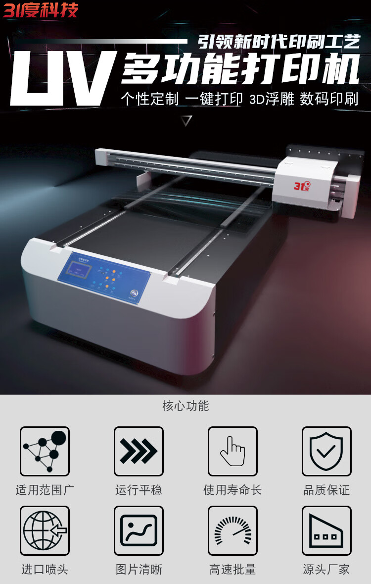 31度国产设备uv打印机大型批量手机壳金属铭牌3D浮雕图案照片定制制作机器设备玻璃圆柱酒杯彩绘喷打印 双喷头