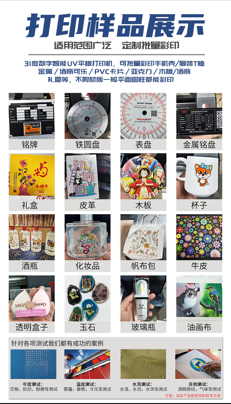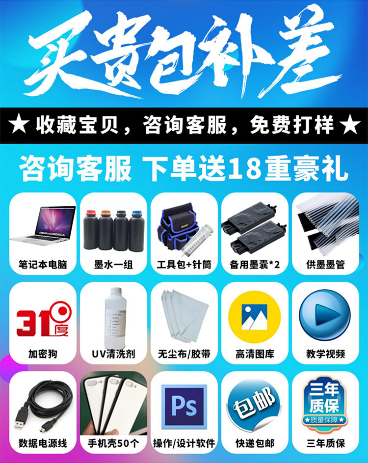 31度国产设备 A3UV平板打印机全自动小型圆柱金属手机壳玻璃亚克力木材塑料彩印3D手机壳印刷喷绘机 官方标配