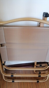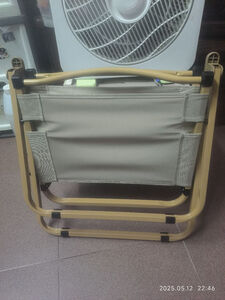 折叠椅,这个大小刚刚好,折叠起来存放,拿取都很方便,这个折叠椅的靠背靠起来很舒服,整体感觉材质很硬朗,整体感觉这个折叠椅很结实