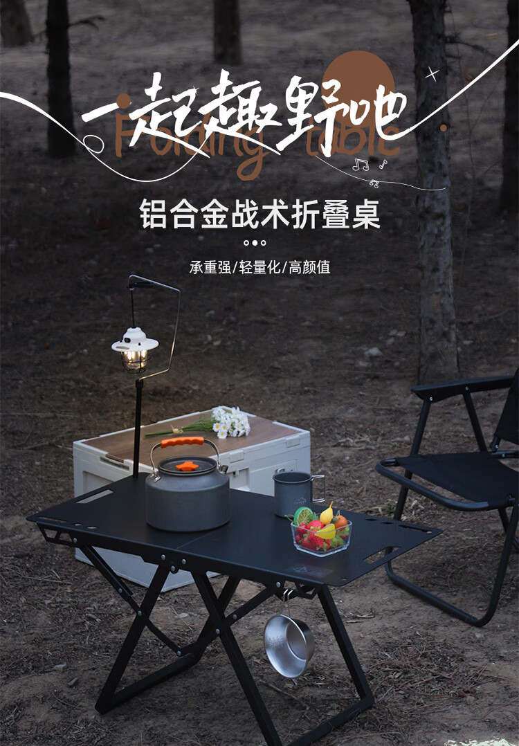 户外露营旅行折叠桌子战术桌铝合金超轻便捷式步行多功能摩旅装备 【铝合金小号】方管加厚升级款