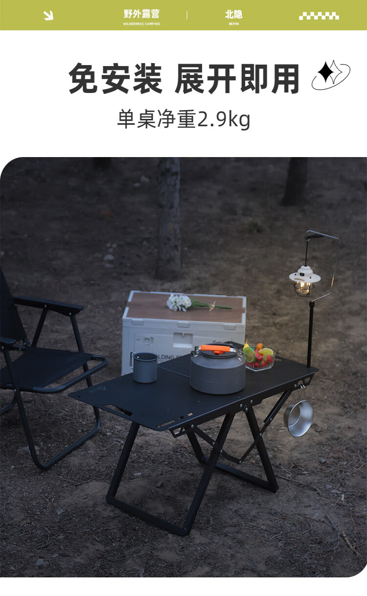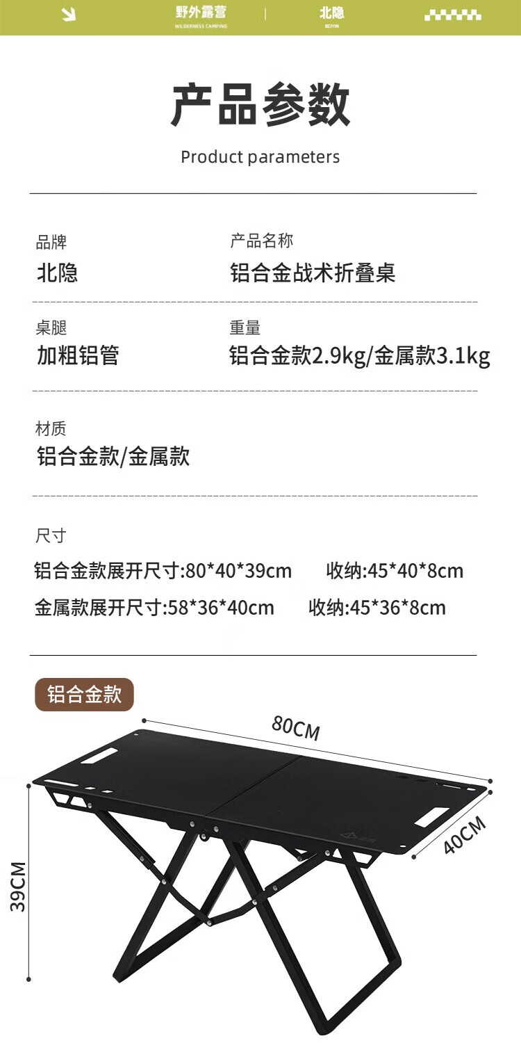 好评!桌子很结实,展开后空间超大,露营时放食物和工具都够用,收纳也方便,铝合金材质轻便耐用!