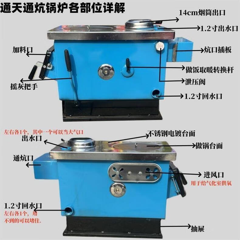 通炕锅炉燃煤家用农村插炕暖气炉煤柴两用地热地暖东北接炕新款 圆口通炕40型(加厚款)