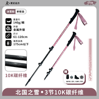 KILIMA登山杖10K碳纤维轻高强度金属便携伸缩拐杖户外运动男女 ST08冰雪粉一根120CM(北国之雪系列)