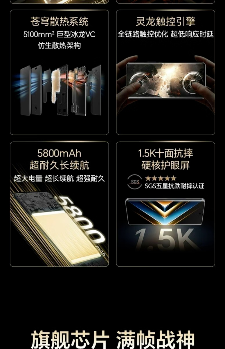 荣耀(HONOR)X50 GT 骁龙8+芯片苍穹散热长续航5800mAh电池1.5K 游戏手机 幻夜黑 16GB+256GB 单机+第三方品牌快充+店保一年