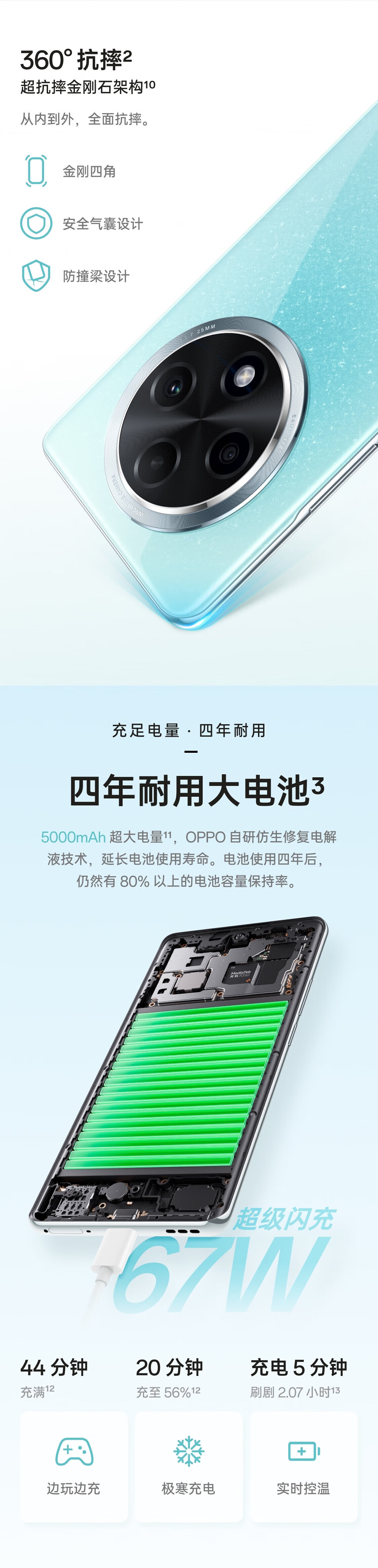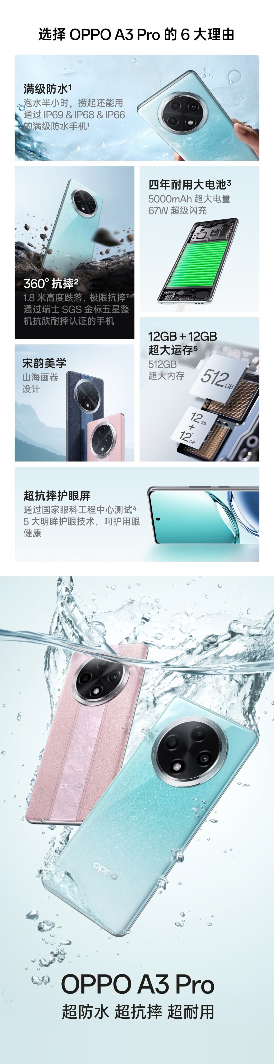 OPPO A3 Pro 【全新未拆封未激活+全国联保】5G 满级防水 360°抗摔 超抗摔护眼屏 智能AI手机 A3Pro-远山蓝 12GB+256GB