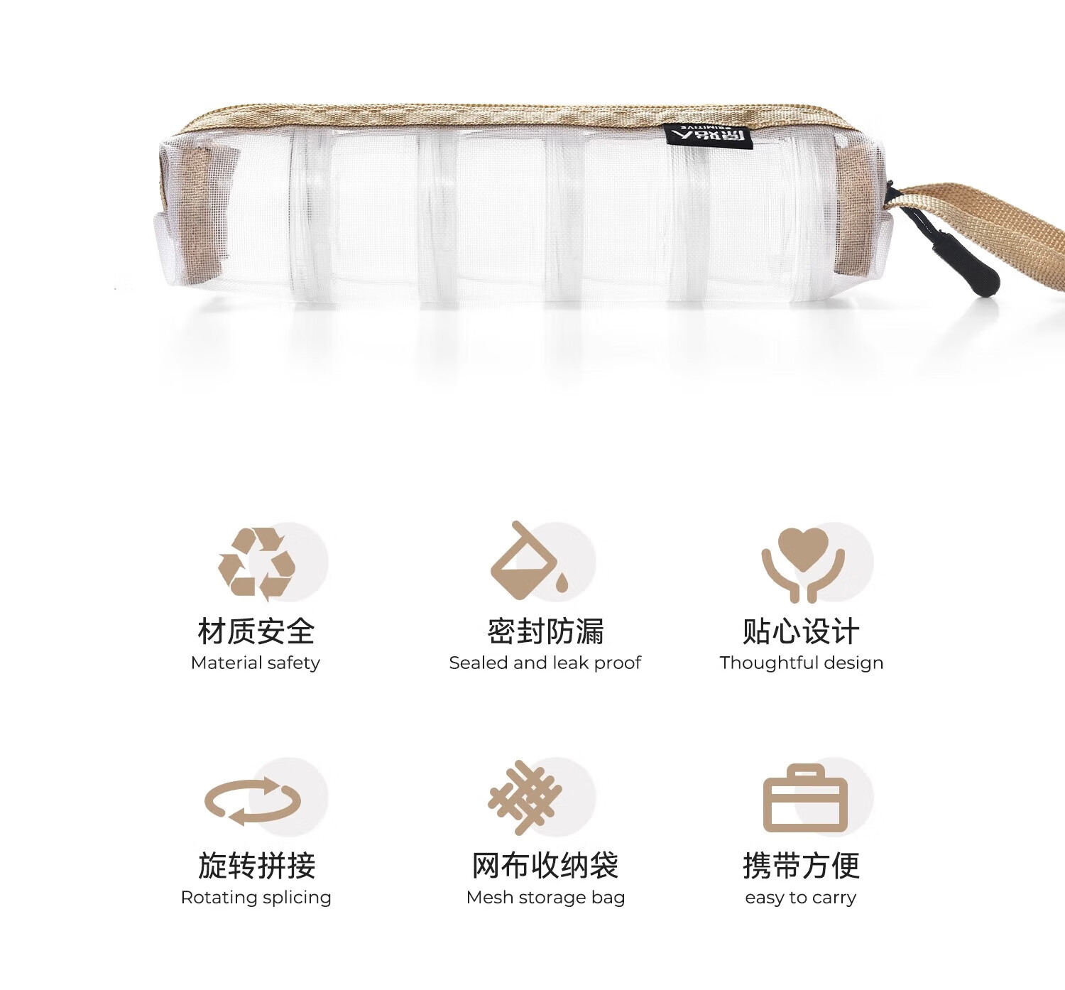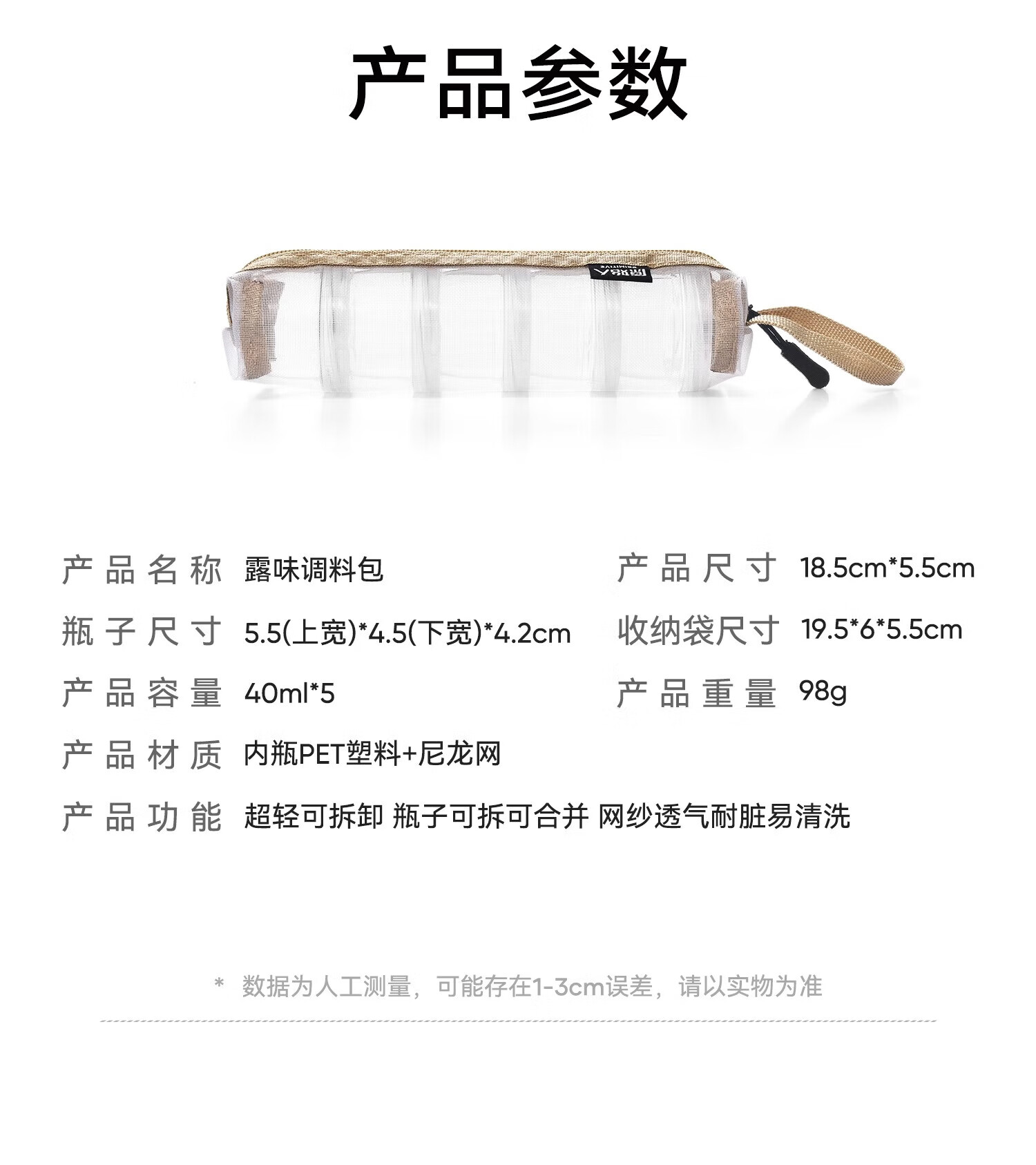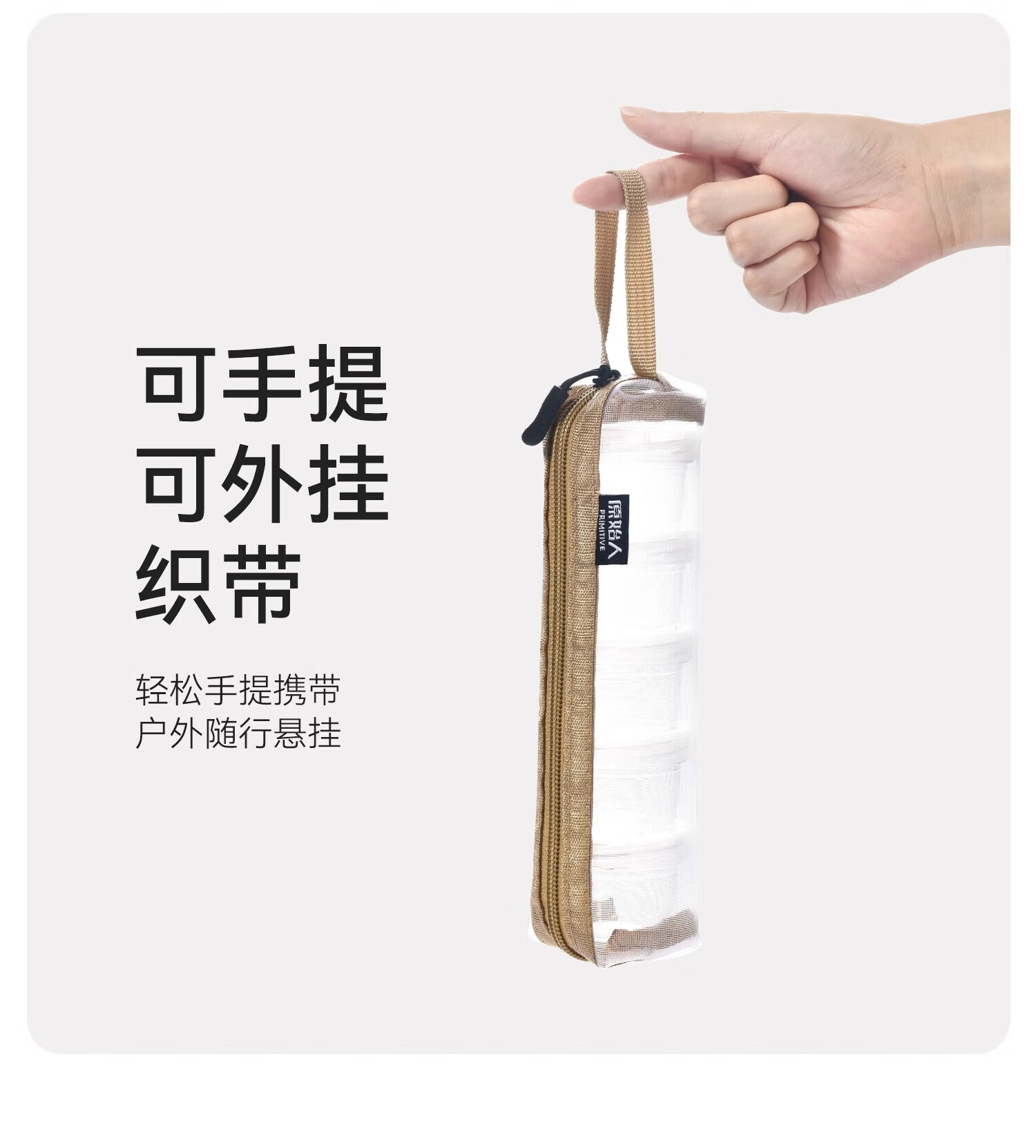 原始人户外便携调味盒套装可拼接调料瓶5件套旅行野餐露营野营垂钓烧烤 可拼接调料盒*5【卡其收纳包】