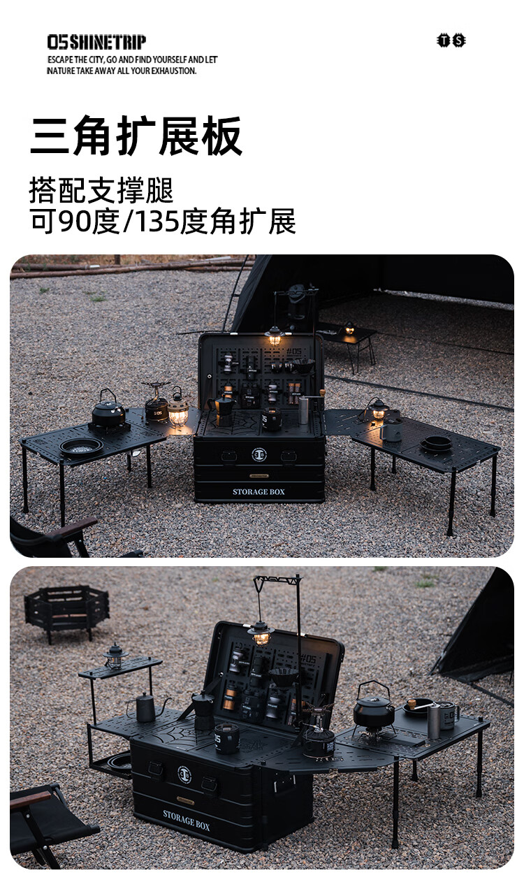 山趣(ShineTrip)户外05系列暗翼IGT战术折叠桌露营桌便携多功能铝合金多用途桌 折叠桌+茶盘+洞洞板*2+层板(不含工具炉具杯具灯)