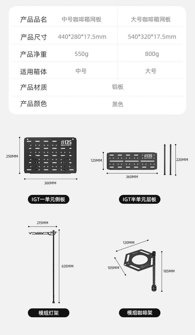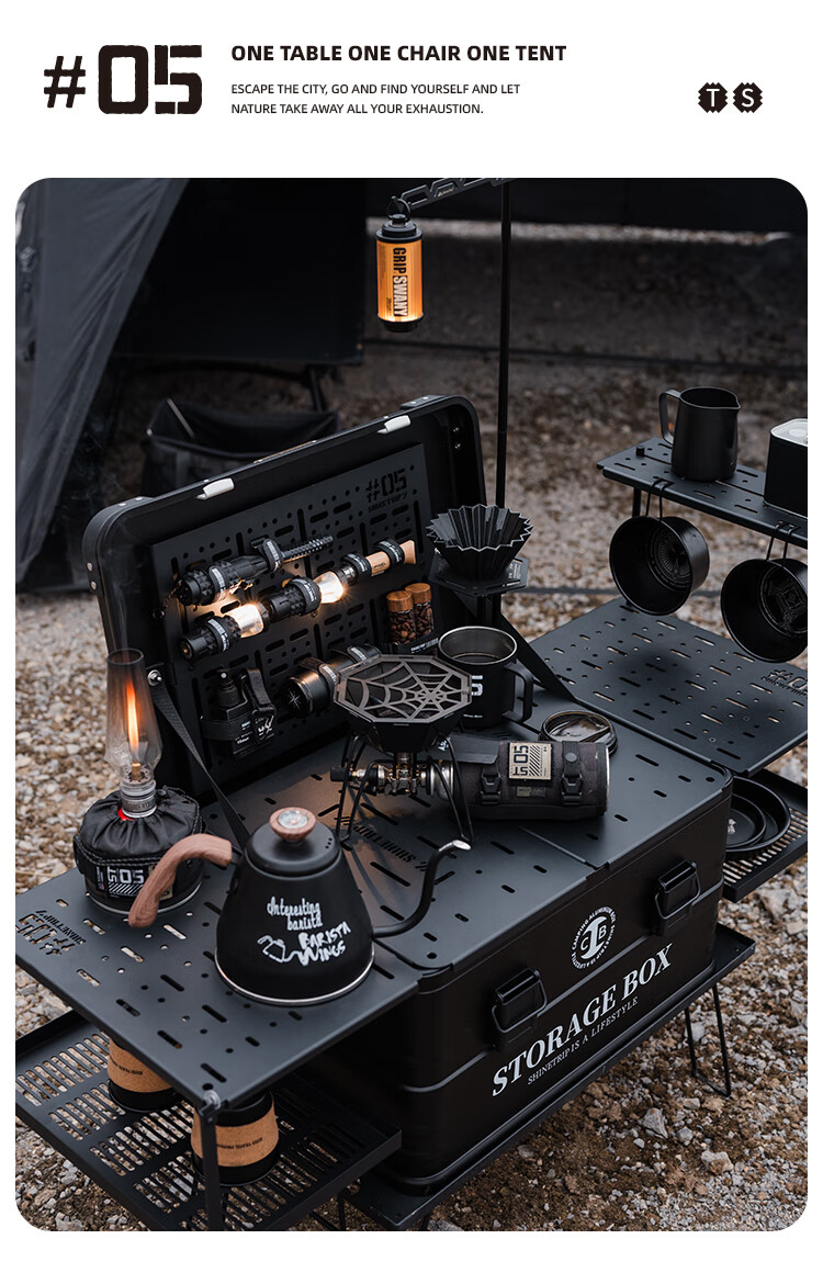 山趣(ShineTrip)户外05系铝合金战术滑板桌黑化露营多功能便携IGT可拓展置物板桌 滑板桌套装-大号L+单元板*3+灯架*1+咖啡架*1+底板*1