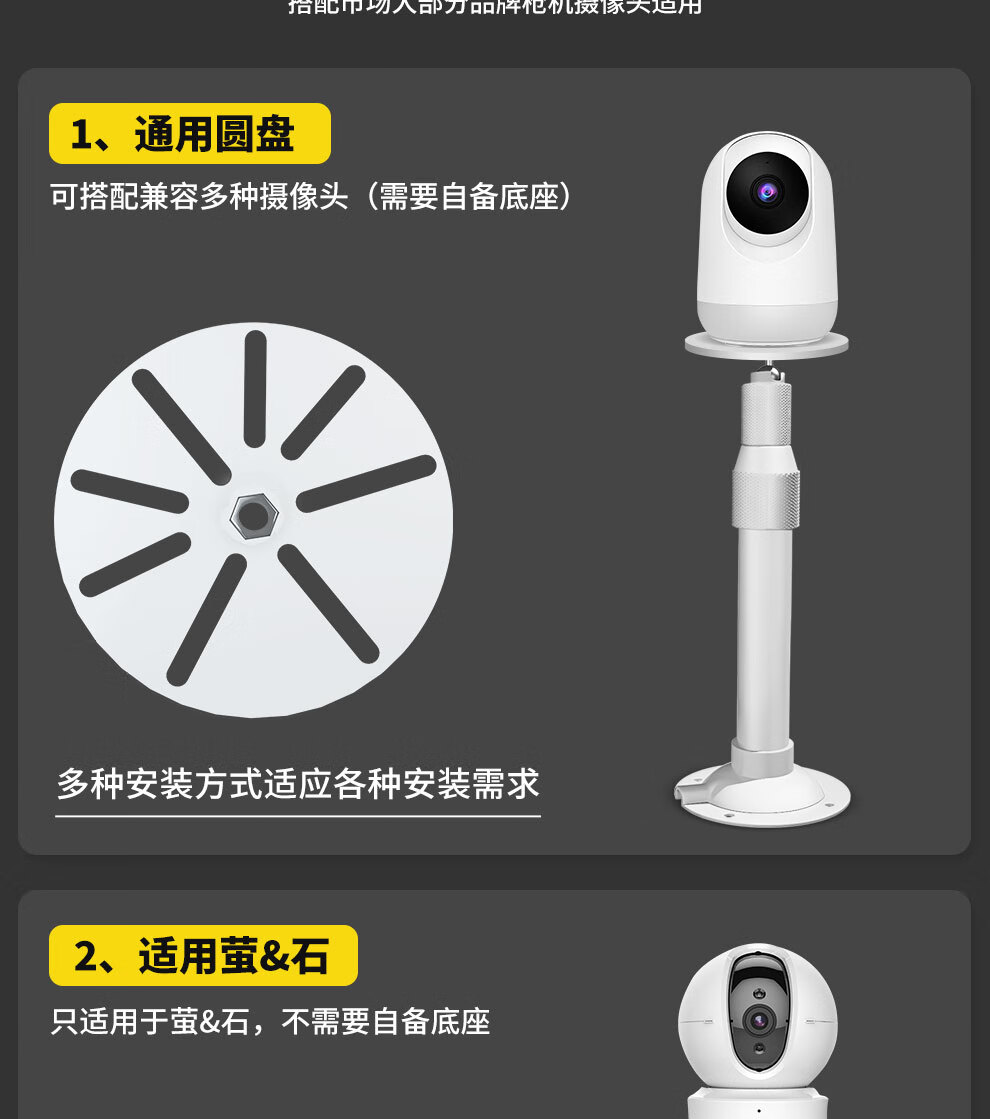 视明通磁吸监控支架摄像头支架先打孔室内 圆盘款