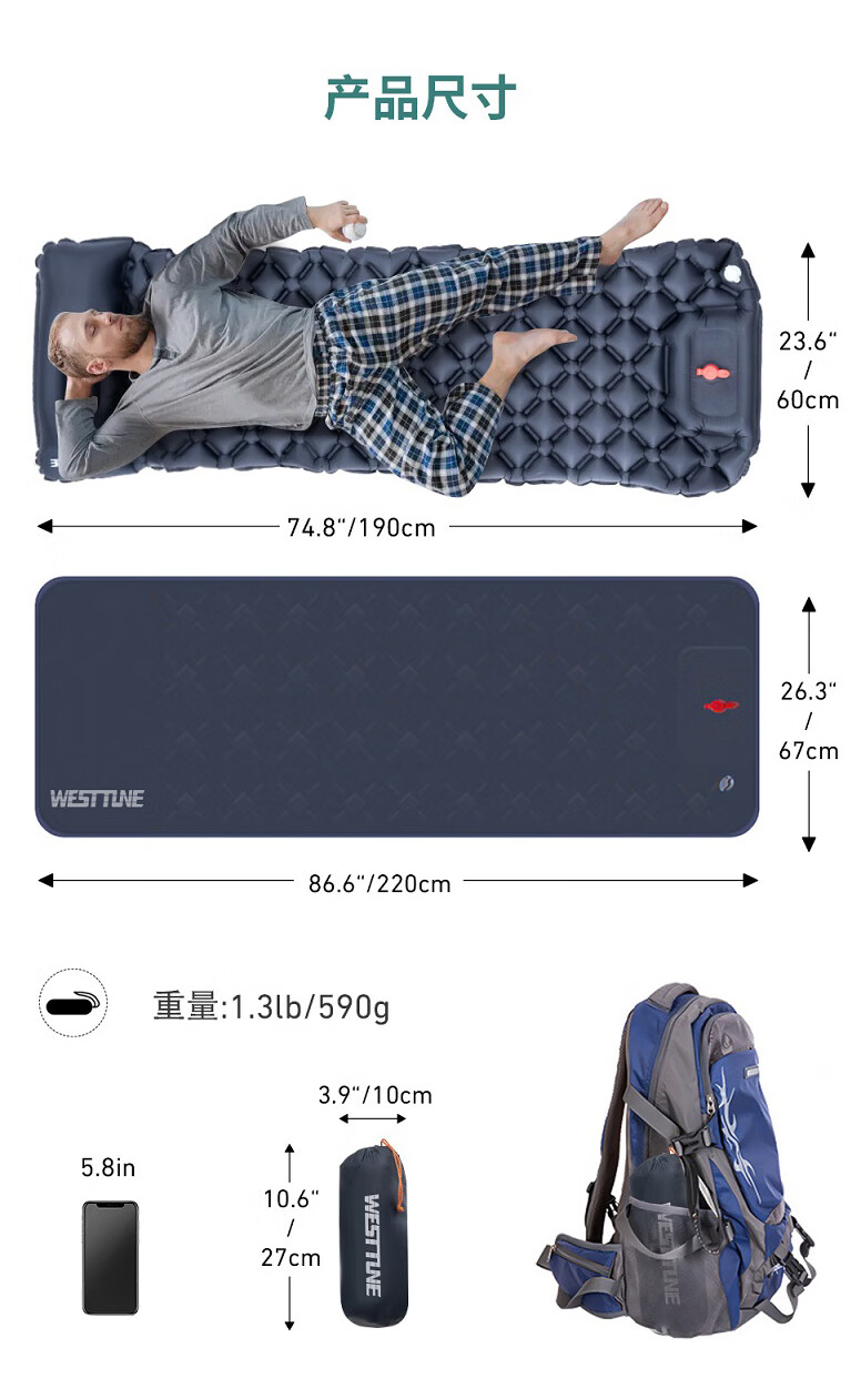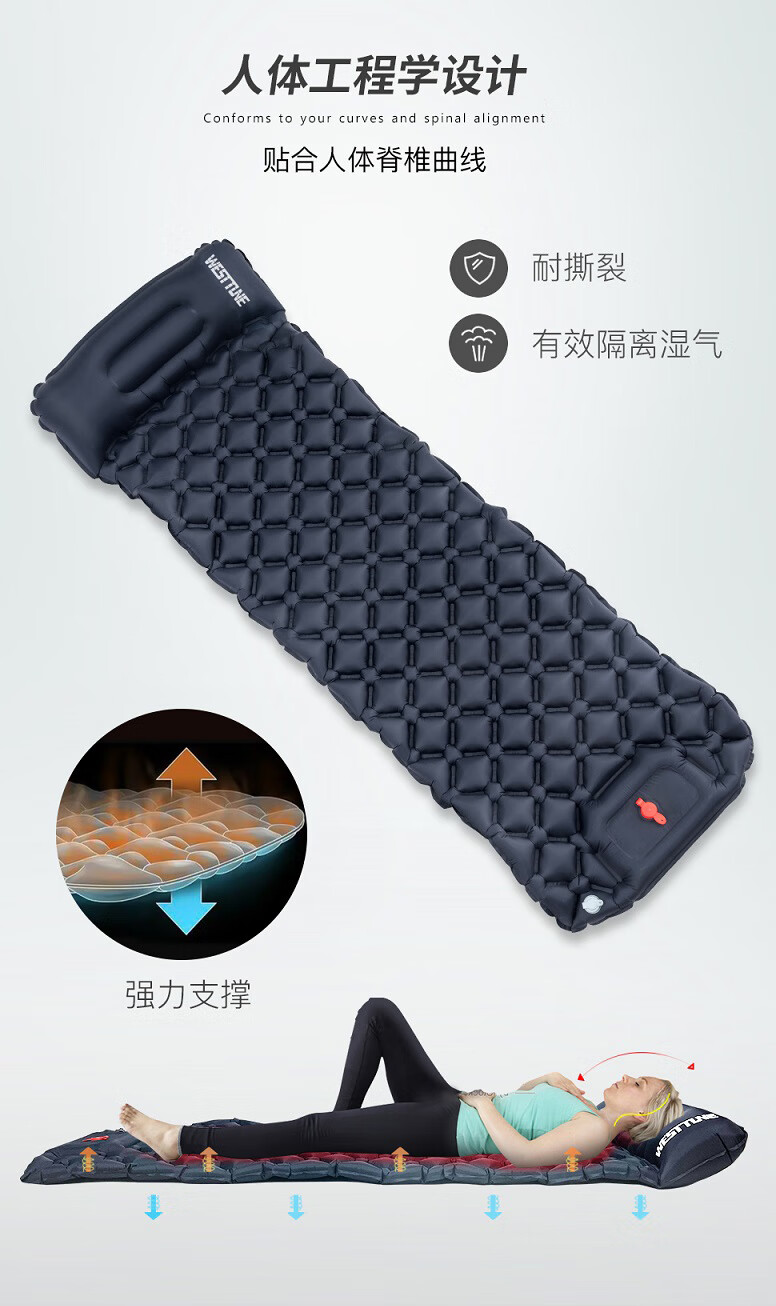 WestTune超轻充气垫床户外露营帐篷睡垫加厚便捷式气垫单人防潮垫 藏青色