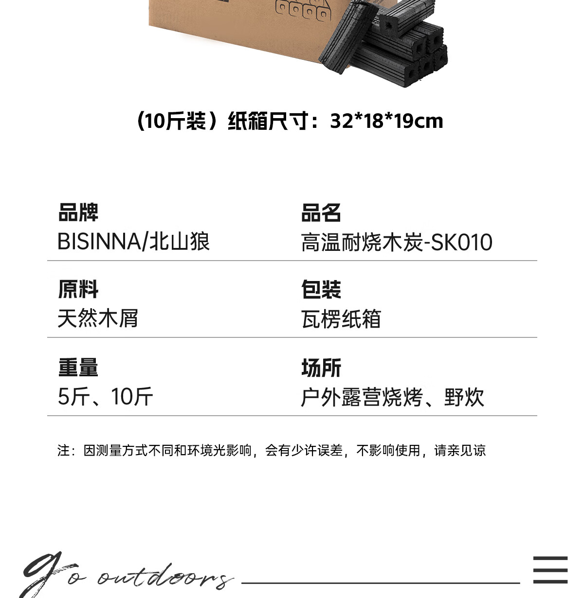北山狼 无烟烧烤碳 竹炭 速燃炭果木炭 无烟木炭-5斤(含引燃炭+炭夹)