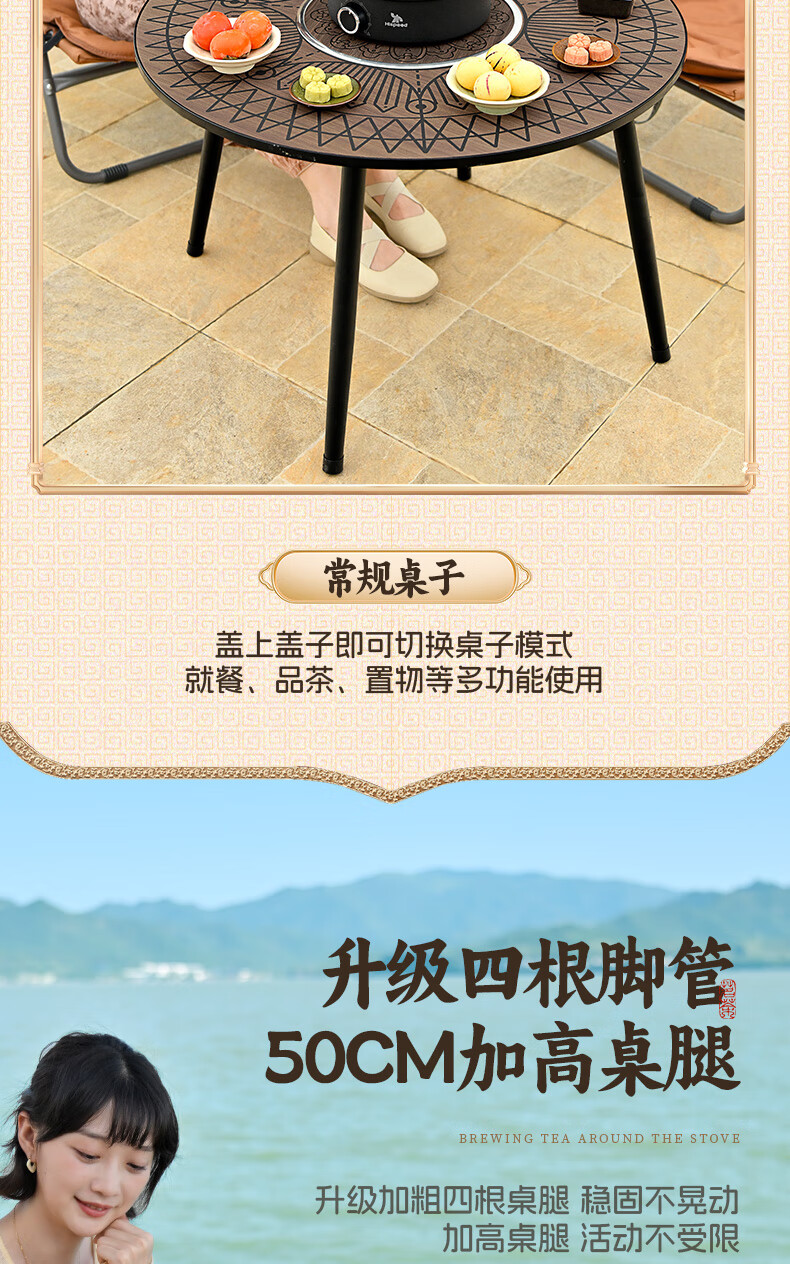 非常的实用,又可以烤炭吃围炉煮茶,又可以当桌子使用,也很结实,价格也实惠,很好