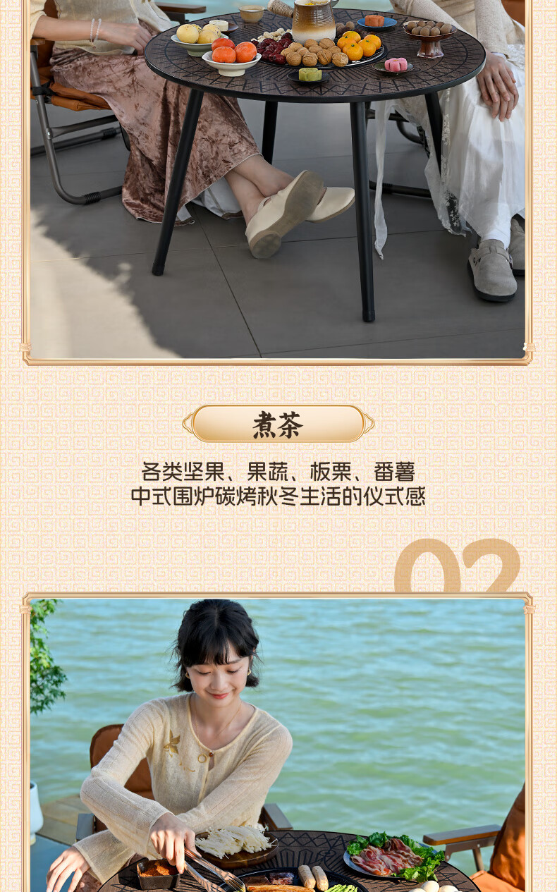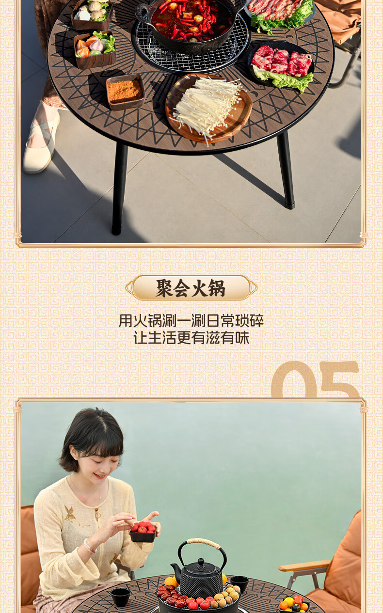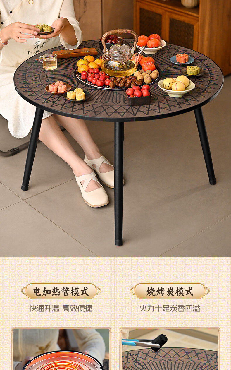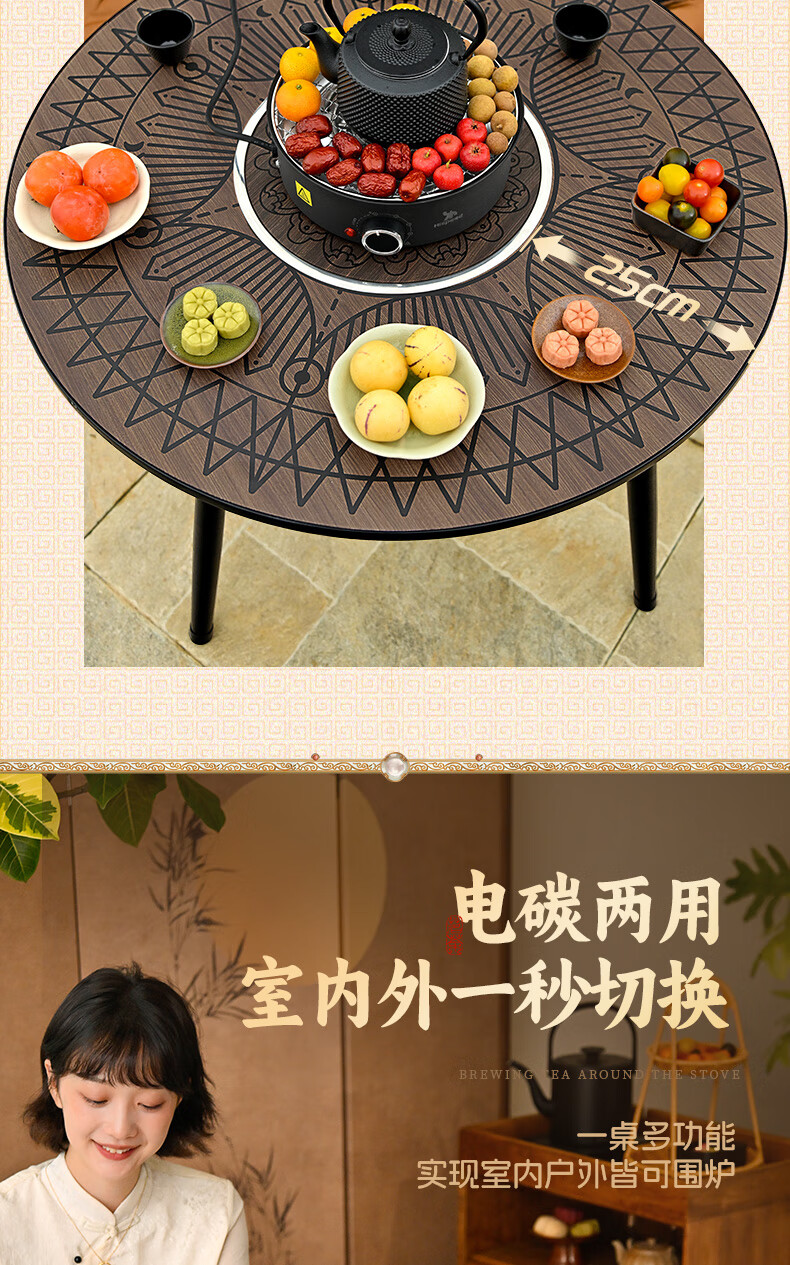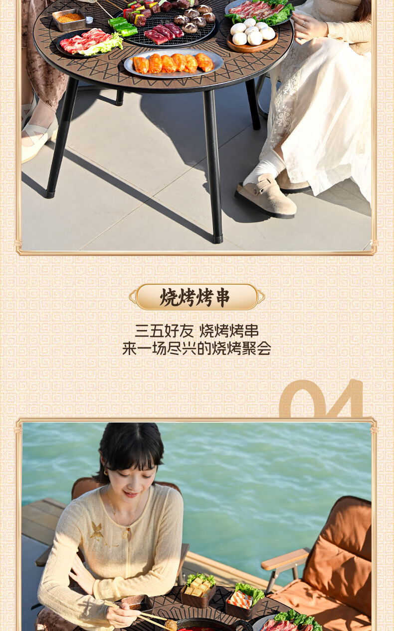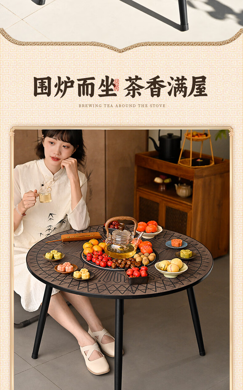CAMELJEANS围炉煮茶桌电碳两用烤奶烧烤炉家用户外露营烤火炉套装 围炉桌-木纹色-175CH25026