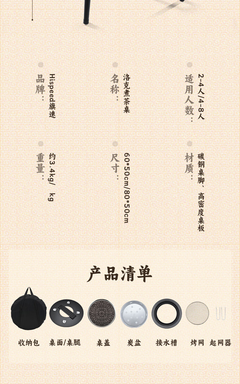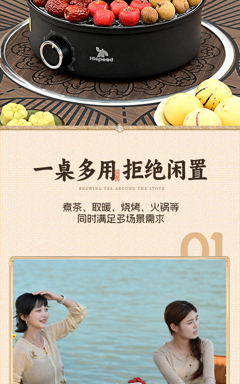 HISPEED旗速围炉煮茶户外烧烤露营木炭烧烤炉多功能家用无烟户外烤炉 【60桌面】升级防水圈【电炭两用款】13件套