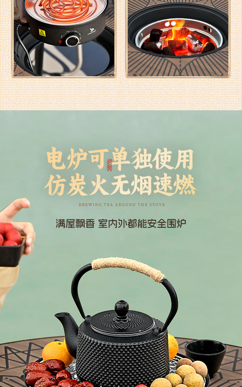 北极狼围炉煮茶家用庭院室内烤火盆煮茶烧水冬季户外露营烧烤取暖 59cm围炉5斤碳5件套