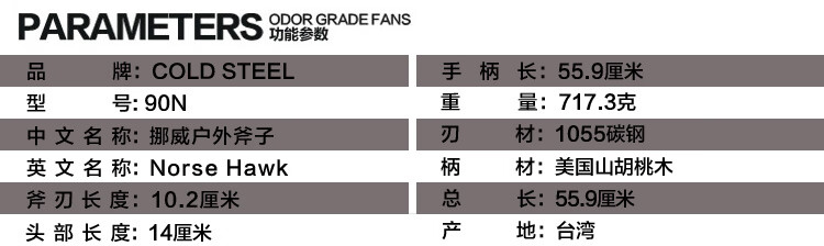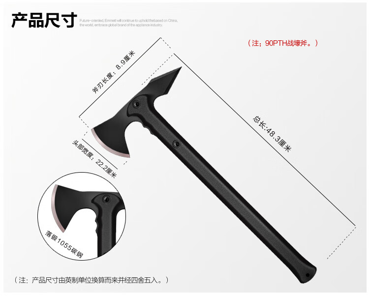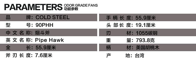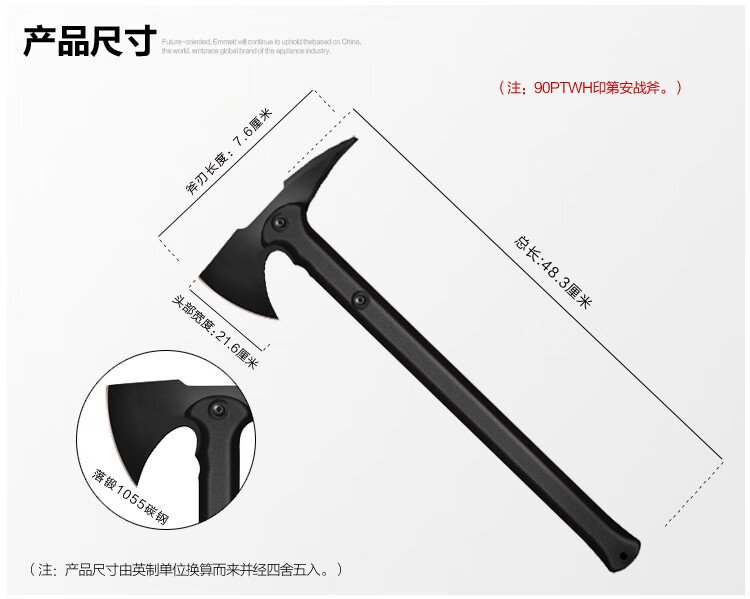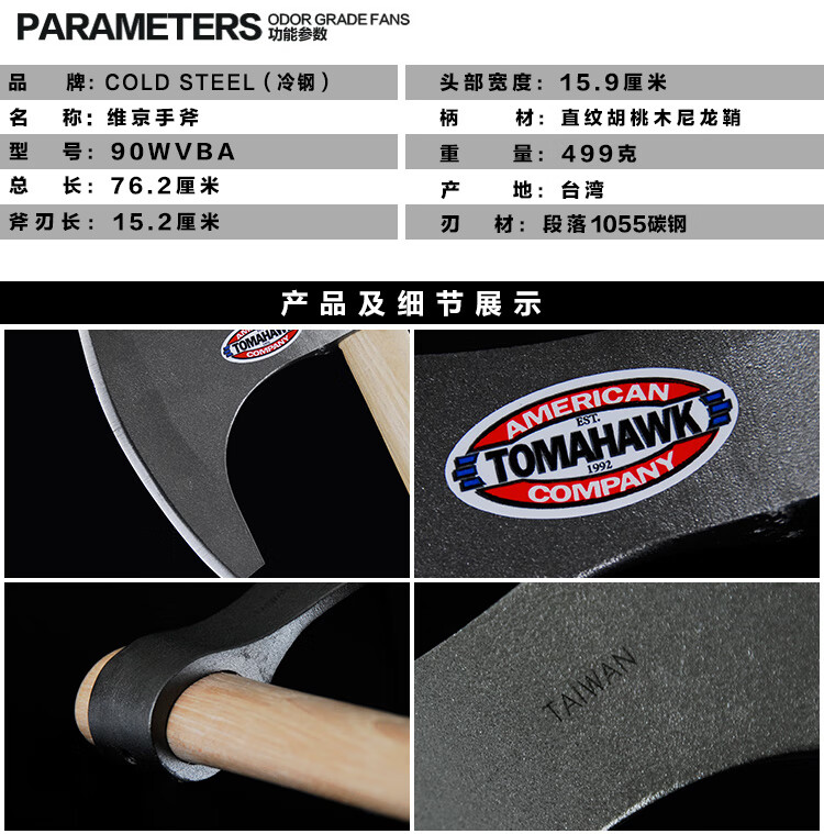 COLD STEEL美国冷钢90PTH印第安战斧户外丛林斧头近身斧子格斗斧露营工具 90PTWH印第安战斧