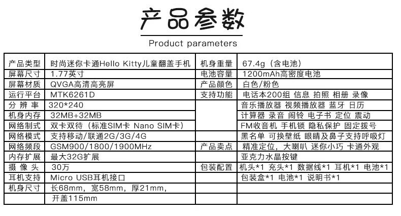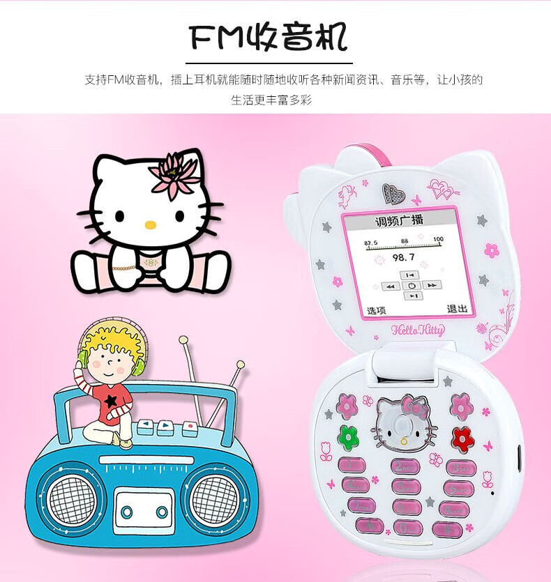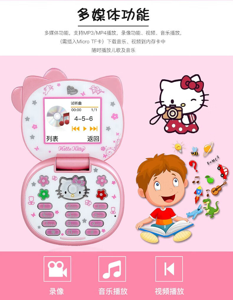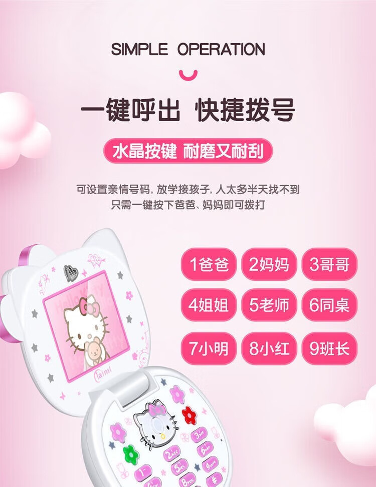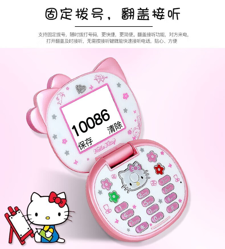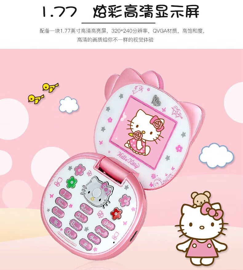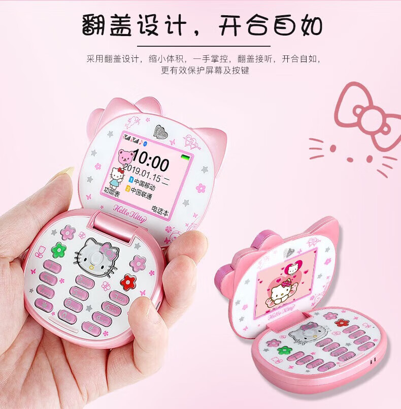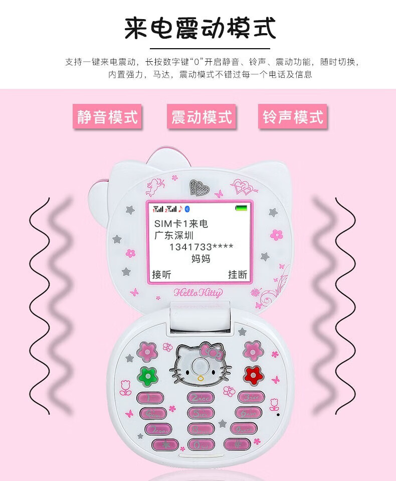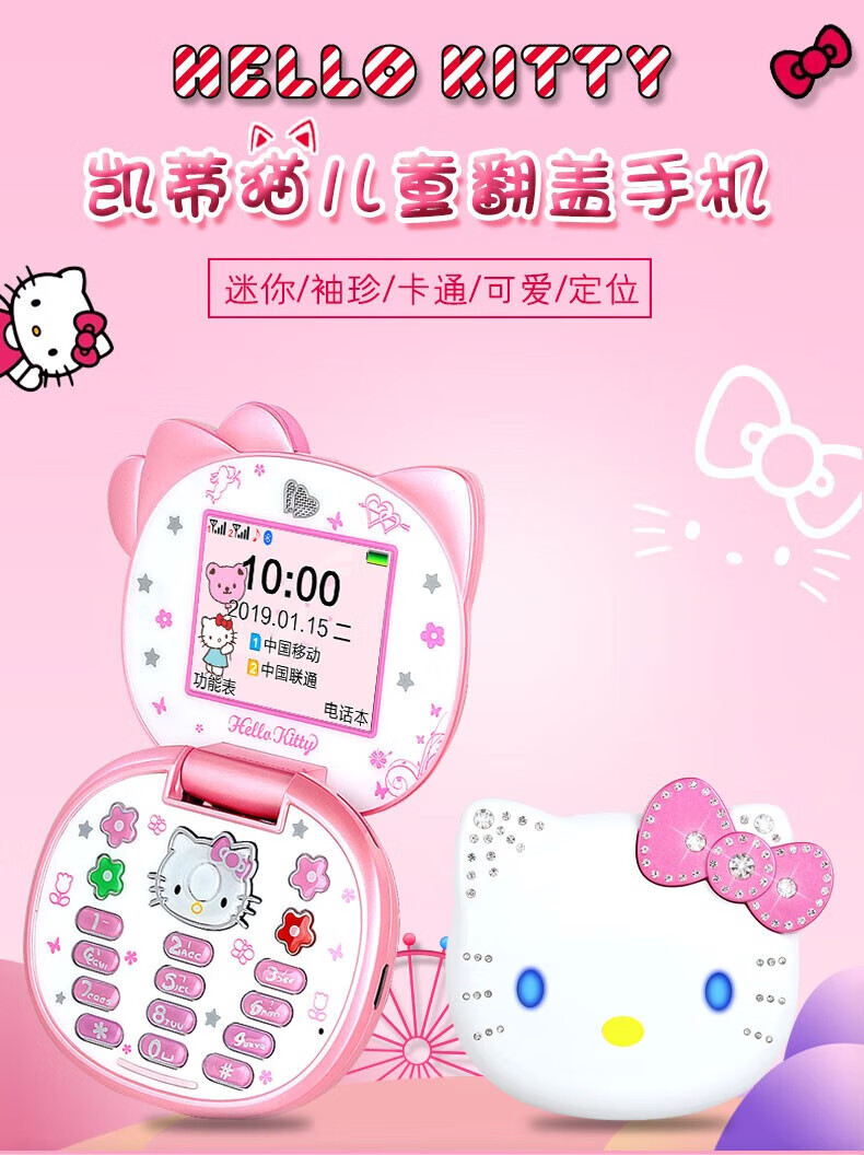捷语(gofly)儿童翻盖手机卡通可爱凯蒂猫 Hellokitty猫迷你学生手机袖珍超小小型小屏手机备用机戒网棒棒机 白色移动版2G