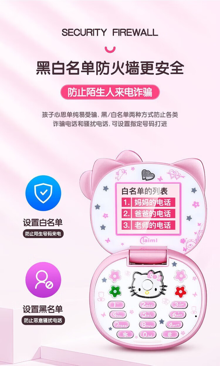 捷语howsn翻盖迷你儿童手机KT猫卡通男女孩学生超小手机学生手戒网手机超长待机个性手机可爱初高中 白色全网通有定位