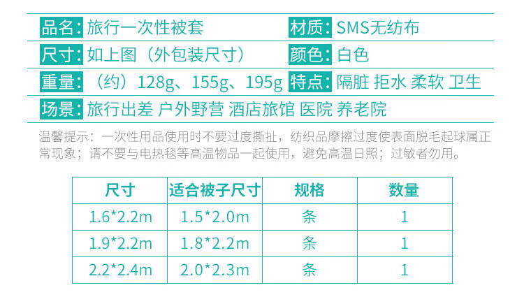 何健弓火车卧铺旅行三四件一次性酒店宾馆被罩隔 枕套0.5*0.85m1条