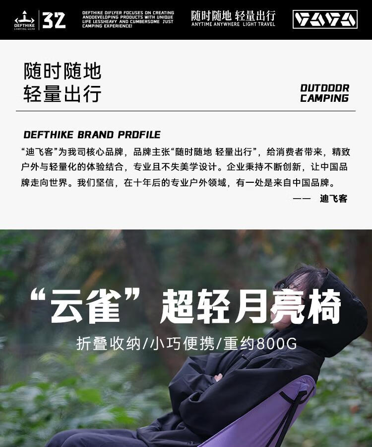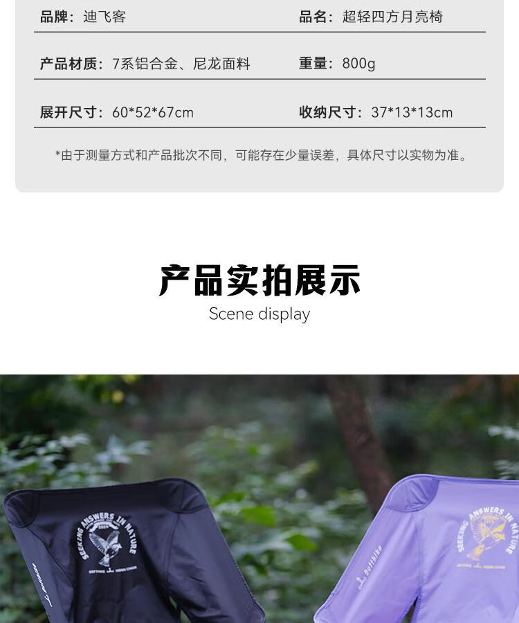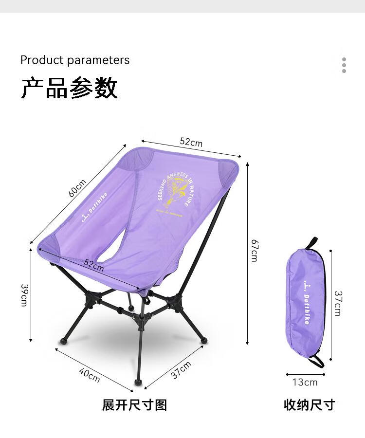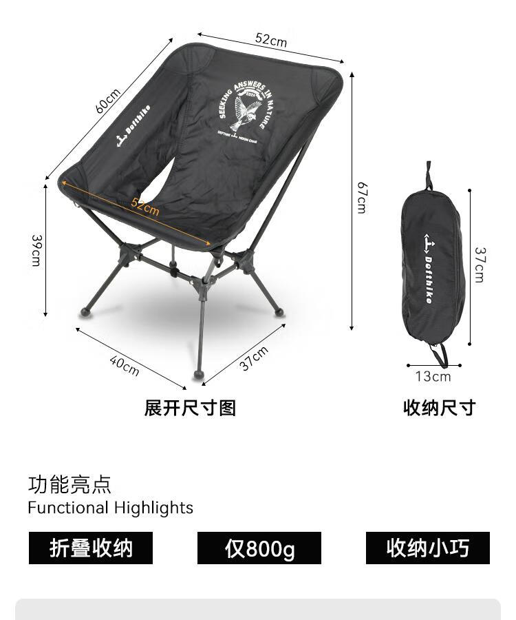 迪飞客超轻户外徒步摩旅露营轻量化四方月亮椅铝合金便捷折叠云雀椅 超轻月亮椅 黑色 重约800g
