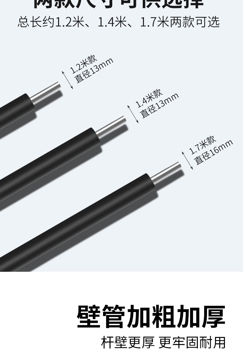 Naturehike挪客天幕杆户外露营帐篷门厅杆高强加厚一杆多用天幕支撑杆配件 黑色/1.7米/铁【2根装】