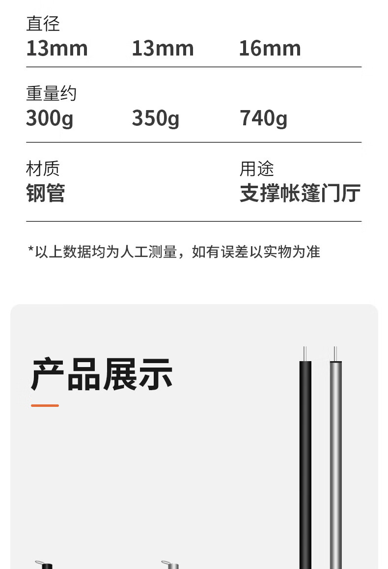 北极狼天幕杆4节支架户外露营帐篷门厅支撑杆加粗碳钢杆超长延伸营柱 门厅/天幕杆【1.2米】一对