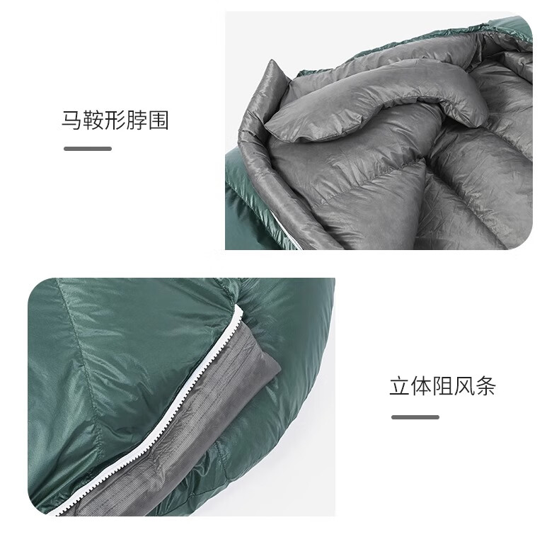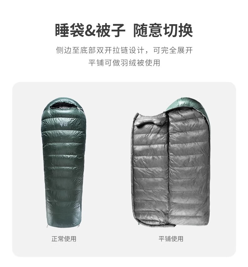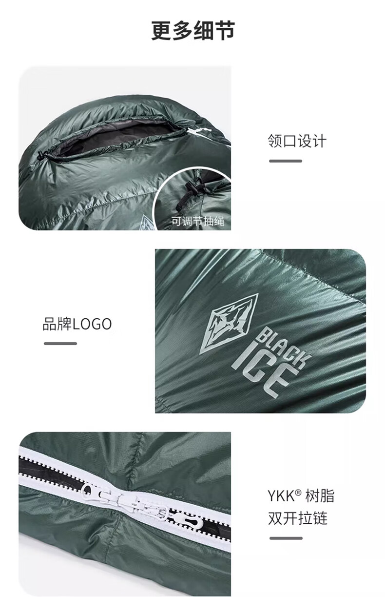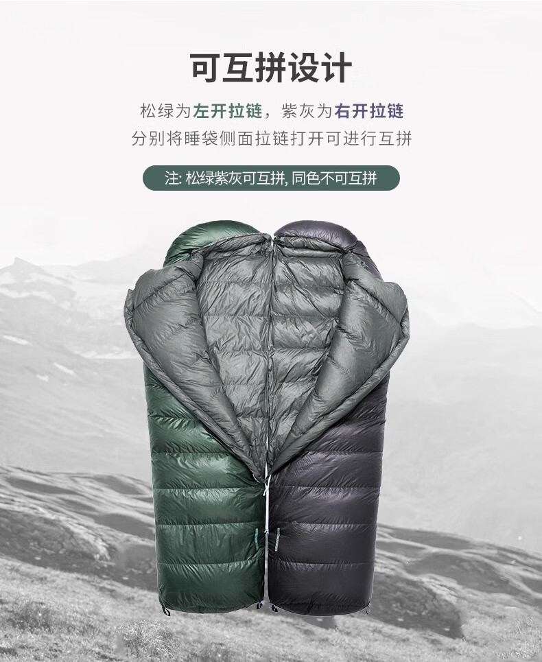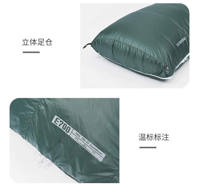 黑冰E系列户外露营睡袋鹅绒信封式羽绒睡袋可拼接 松绿 E400 M码【新标准】