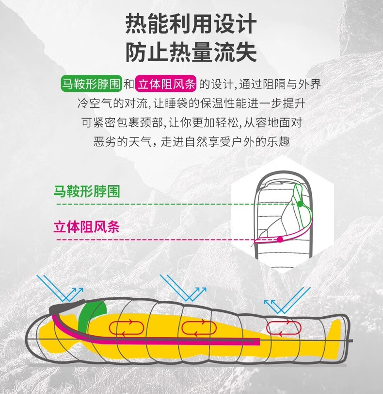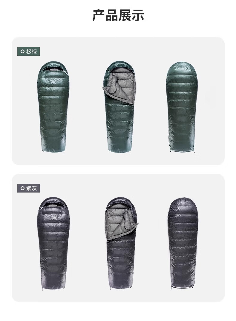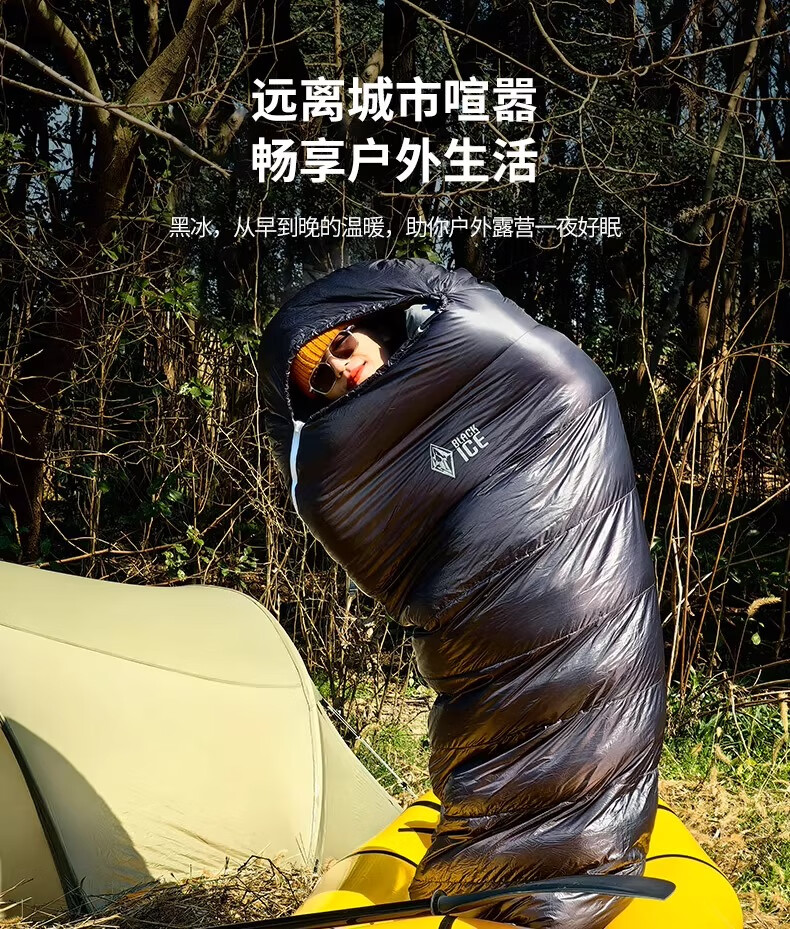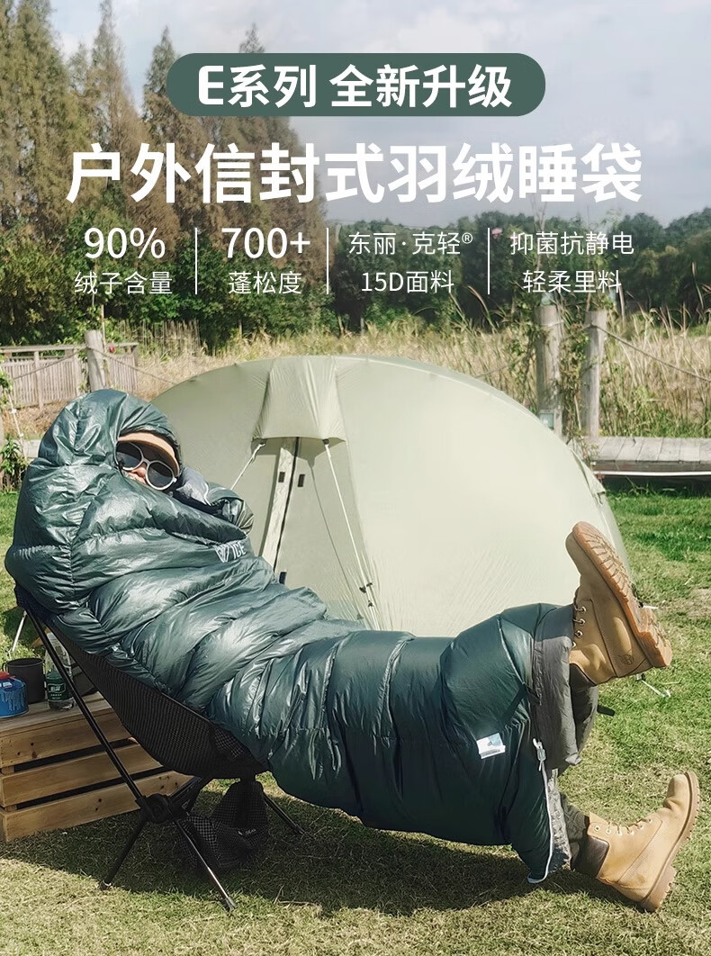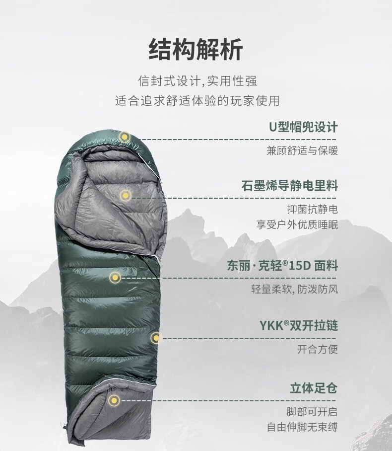 黑冰E系列户外露营睡袋鹅绒信封式羽绒睡袋可拼接 松绿 E400 M码【新标准】