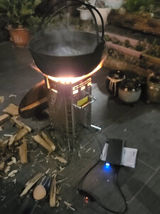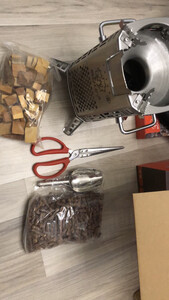 柴火炉非常巴适,火力旺盛,燃烧充分。爆炒干啥都行,烤盘是用过最好用的烤盘,自带导油槽。钛烧水壶和钛茶具做工非常精致,值得拥有。