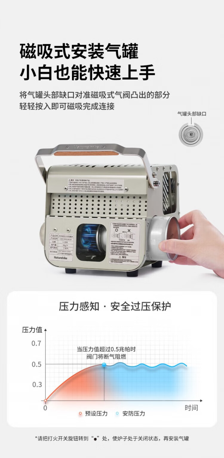 NatureHike挪客时光迷你卡式取暖炉燃气取暖器便携式户外露营冬季取暖烤火炉 寒山绿/现货速发