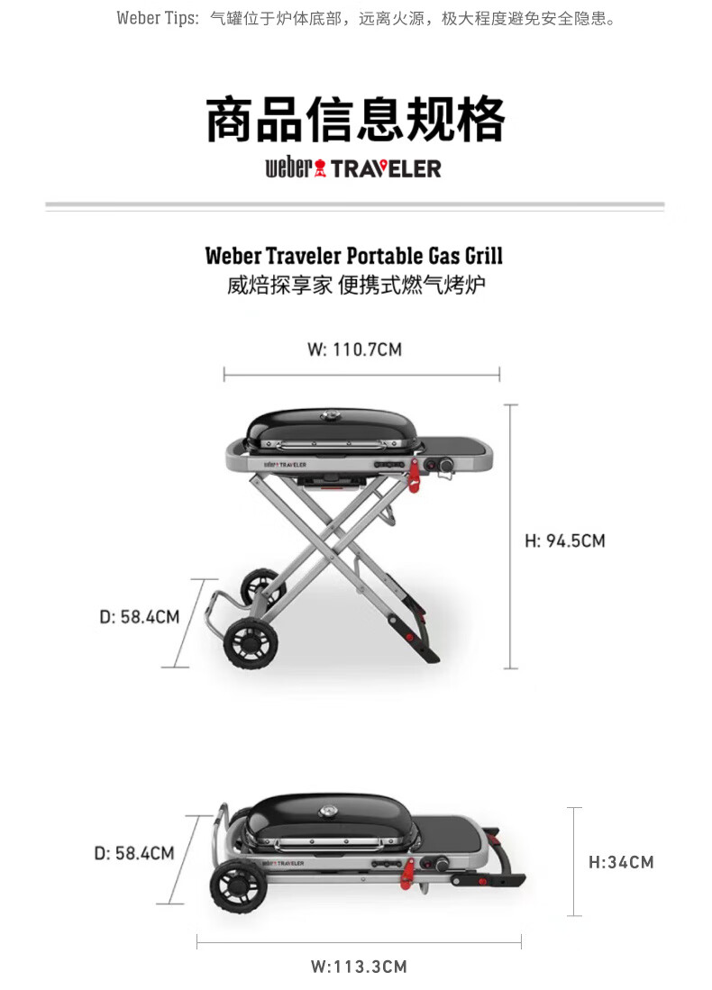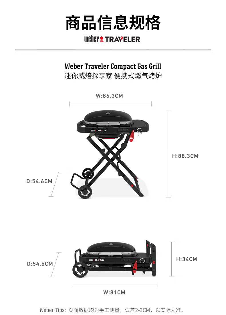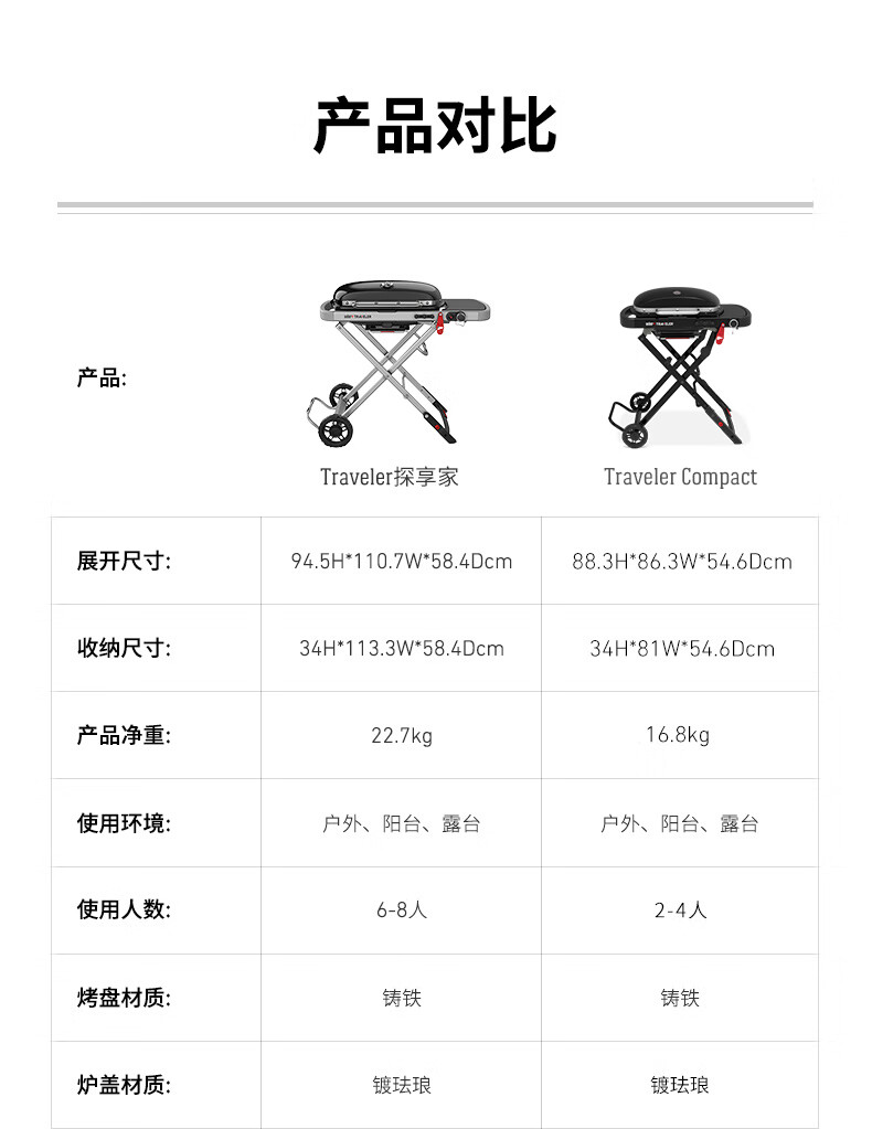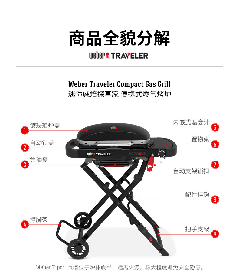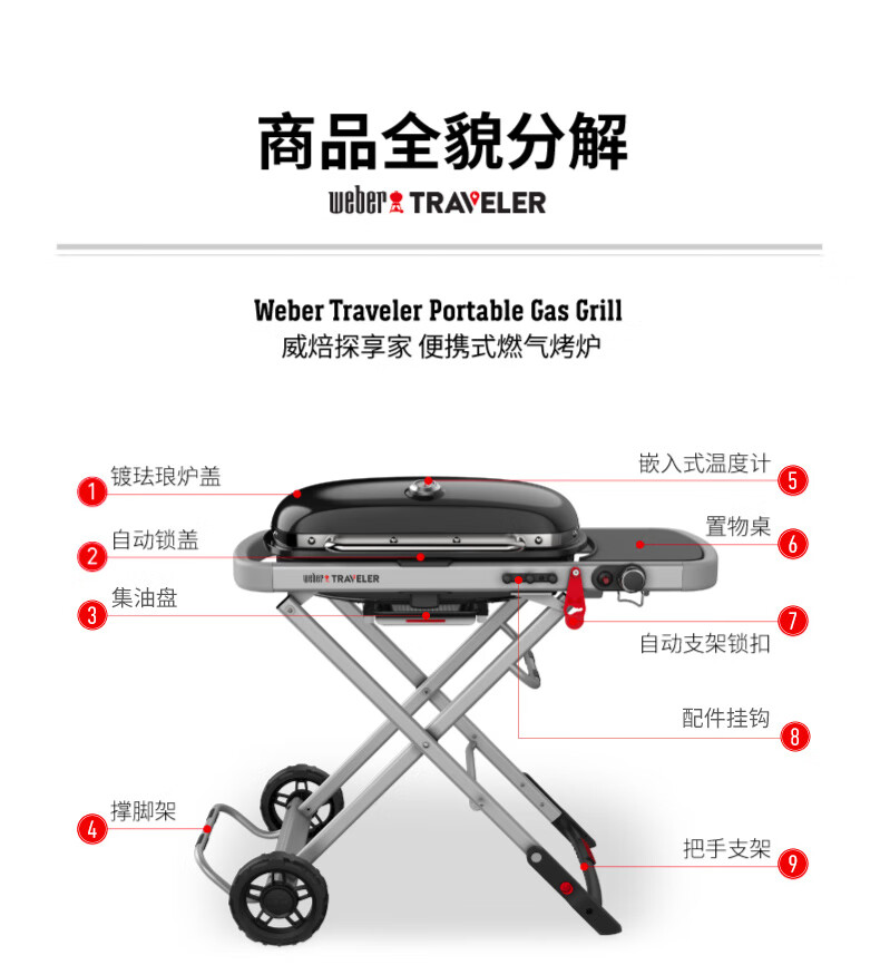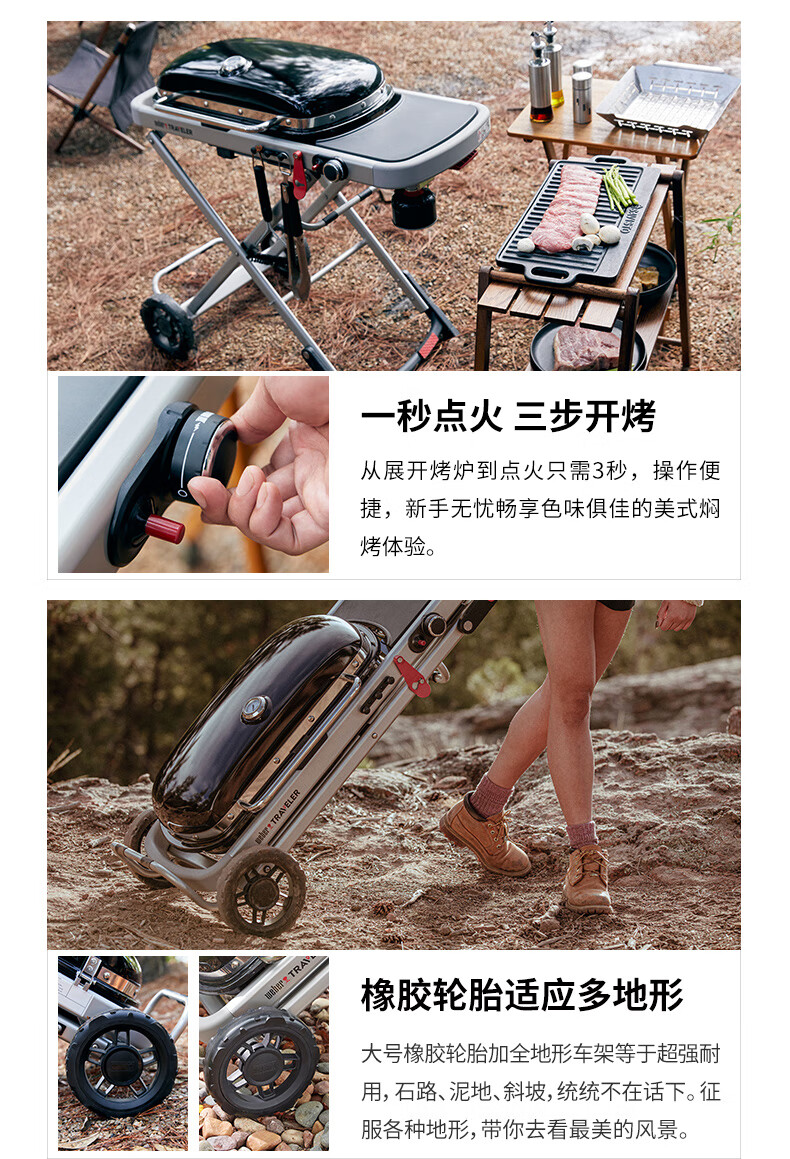 威焙(weber)Traveler燃气大烤盘烤炉户外露营庭院野炊便携烤肉折叠烧烤炉 新款上市神秘黑