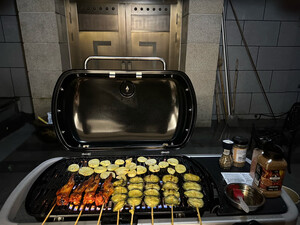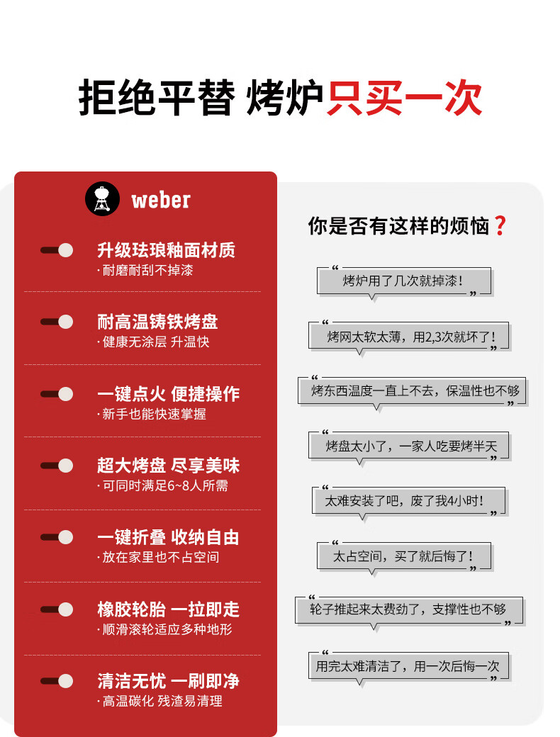 纠结了两三个礼拜,还是买了这款Weber的Travele烤炉,做工没得说,拆开包装就能感受到和几百块烤炉的差别。收纳结构非常巧妙,铸铁烤盘很重很扎实。晚上立即给家人做了一个烧烤晚餐,完美。