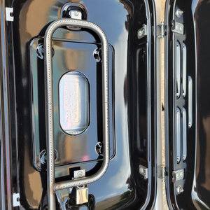 烤炉的质感真是太好了!黑色漆面光可鉴人。炉子下面燃气管线布线规整,操作简便。
