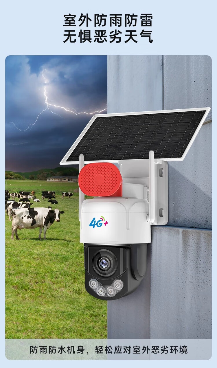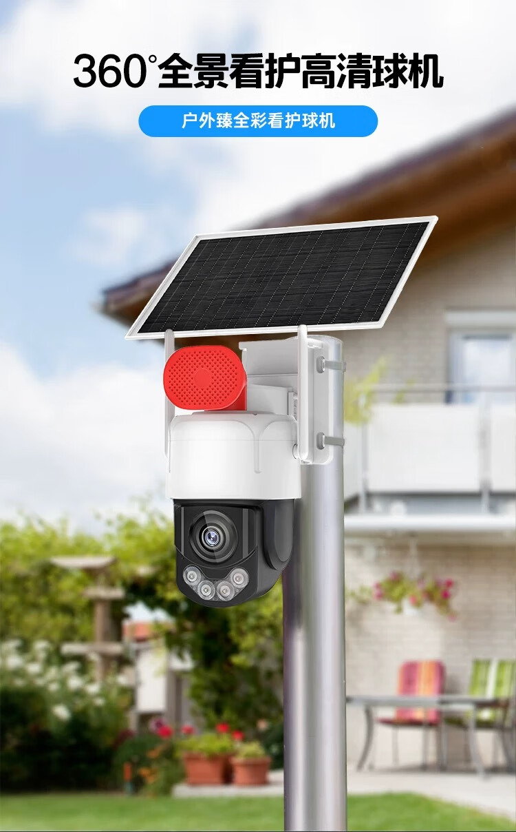 阿里云摄影机摄像头免流量监控4G免流太阳能超长待机监控摄像头家用监控器360度无死角带夜视全景 【标准版】全彩太阳能 标准续航+32G卡+免费流量