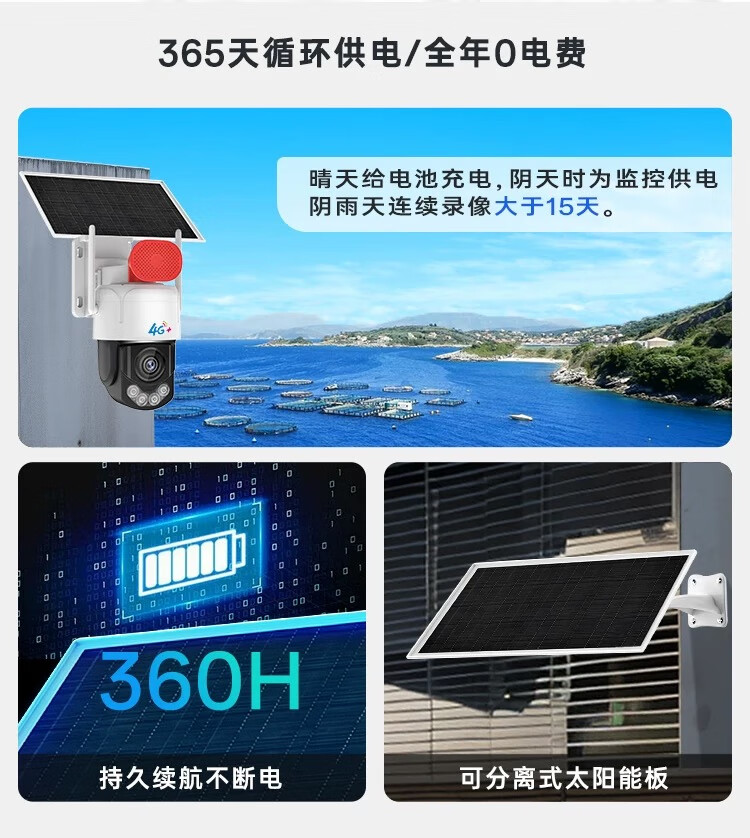 特来给商家给个好评。因为以前有用过这个品牌的摄像头,应该属于第一代的吧,换需要买流量年费和存储卡。这次买的是新一代的太阳能板供电,并且真得是无需流量360度无死角,夜间摄像画面更清晰了,功能实现更全面了,我们安装在露天材料场地真得很方便!大大的好评,过几天再买四个!