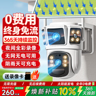 康臣视4G太阳能监控摄像头无电无网终身免流量AOV黑光臻全彩超高清360全景全彩夜视追踪户外室外防水防晒 4G太阳能臻全彩双画面【终身免流量】电信移动双卡 送永久30天循环录像+黑光夜如白昼+20W太