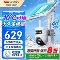 HIKVISION海康威视太阳能摄像头免插电800万双摄农村家用室外4G终身免流量360度无死角AOV户外监控器T4