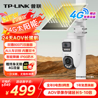 普联(TP-LINK)双摄800万终身永久免流量4G太阳能监控摄像头监控器360度无死角带夜视全景全彩家用室外户外免插电