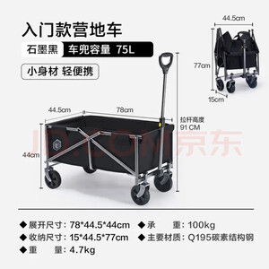 京东京造 户外露营车 折叠收纳营地车小推车拖车 野餐摆摊出行装备 石墨黑