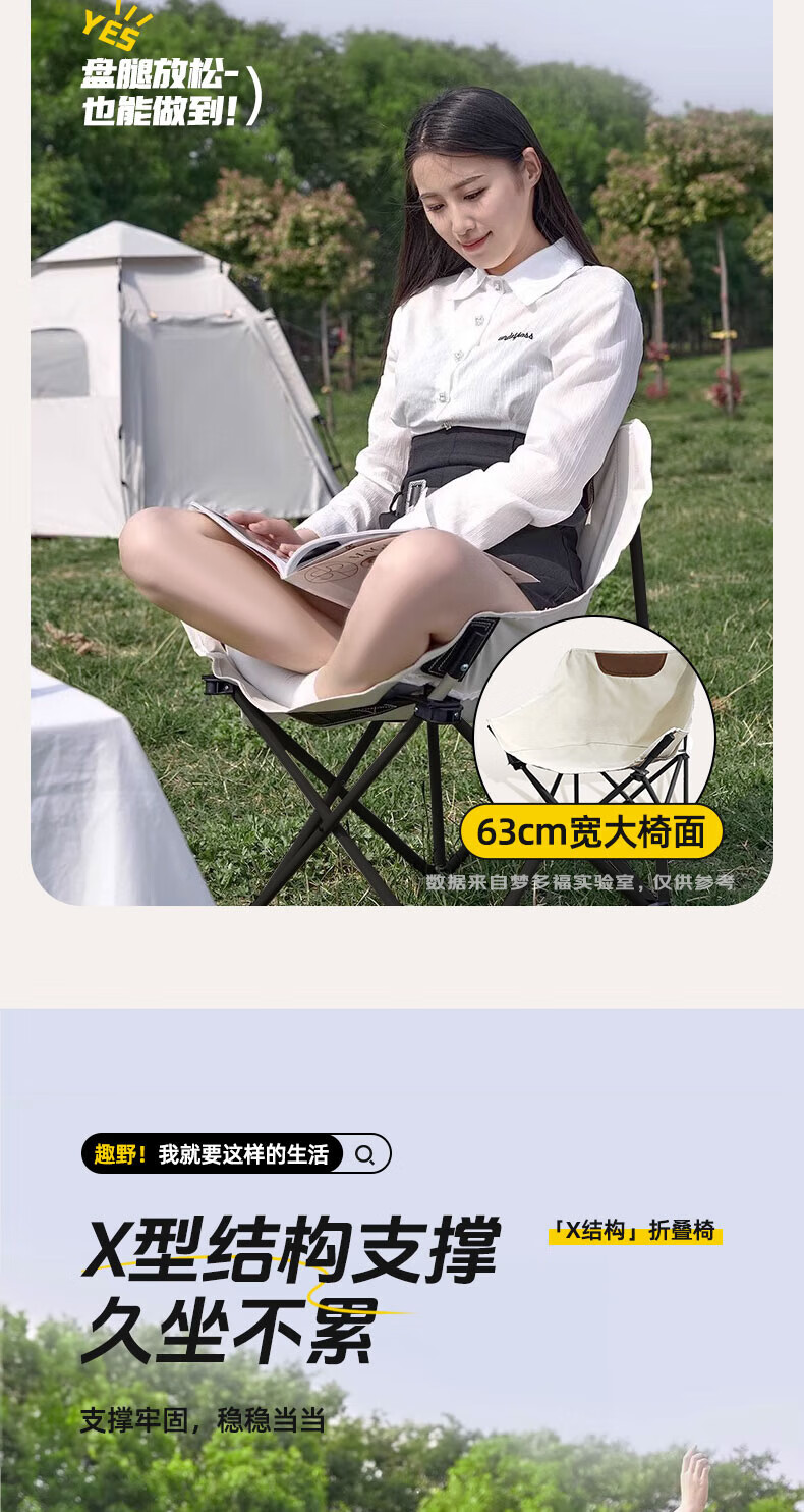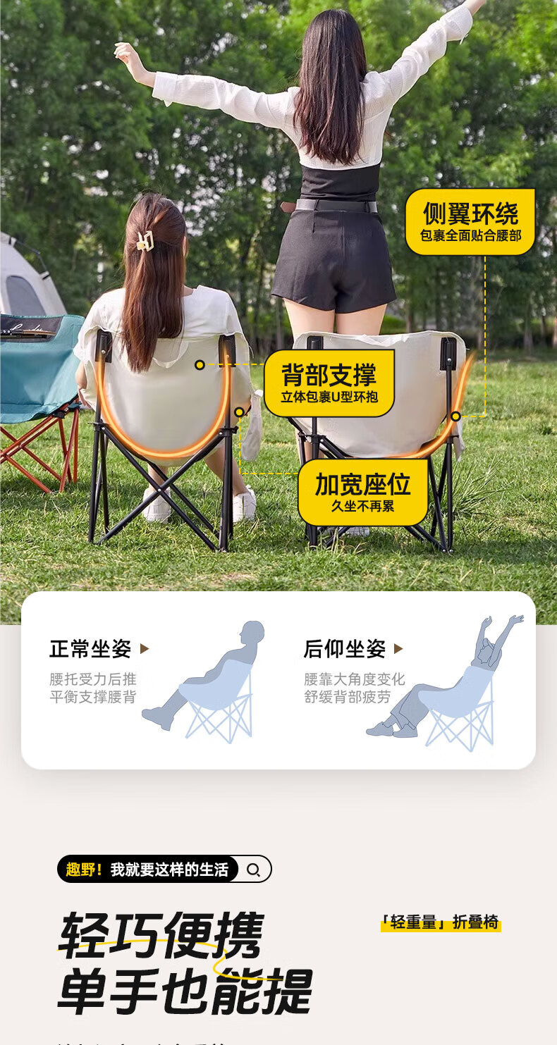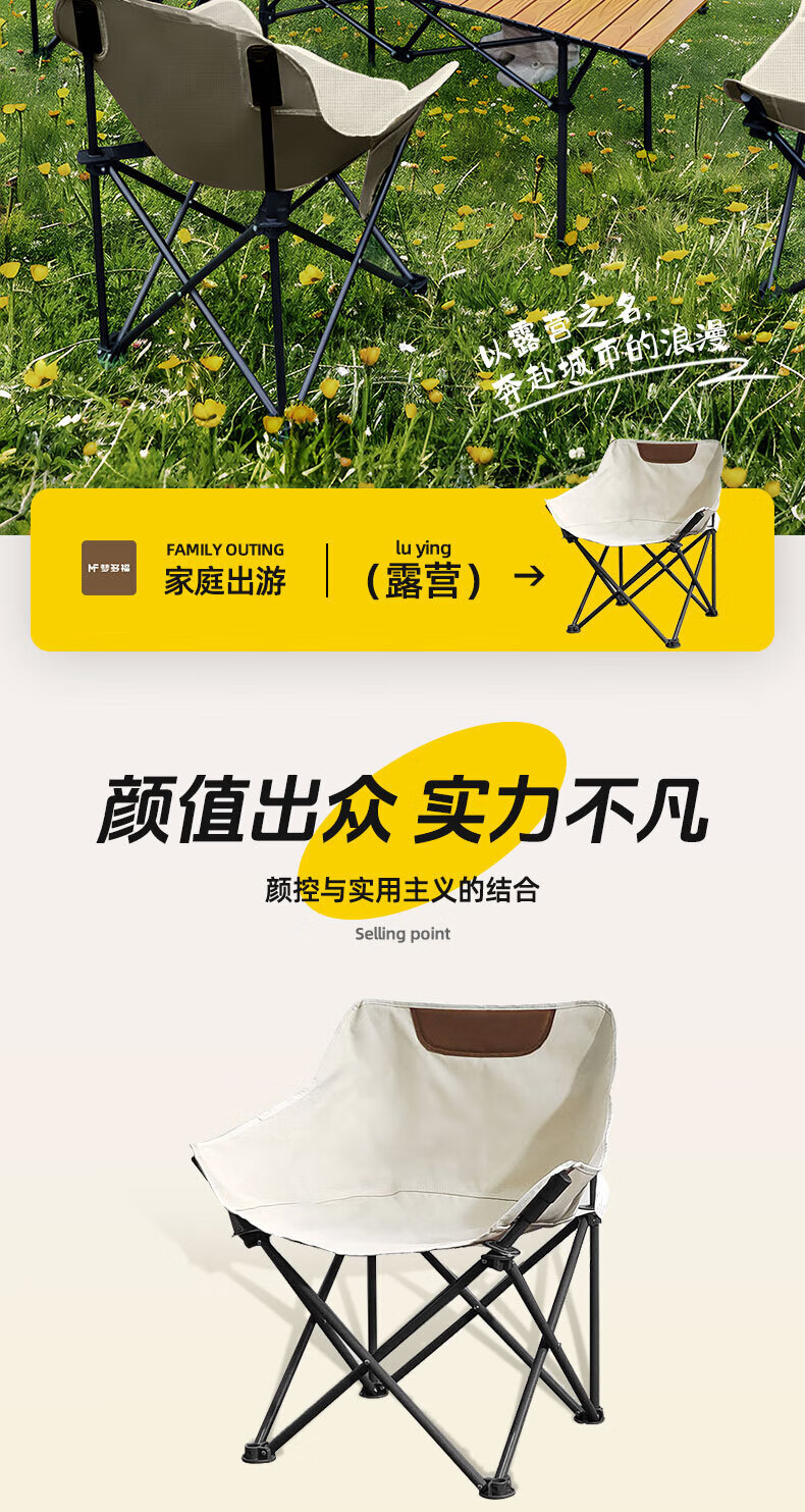 京严户外桌椅露营野餐便携折叠蛋卷桌子折叠椅野营全套装备月亮椅躺椅 一桌六椅【120cm桌+月亮椅*6】 赠收纳袋【便携折叠】加粗支架