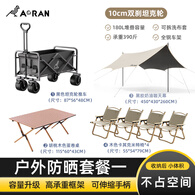 Aoran户外露营推车户外超大营地车野营可折叠小拖车野餐车露营车桌板 180L 黑色双刹坦克轮-露营套餐