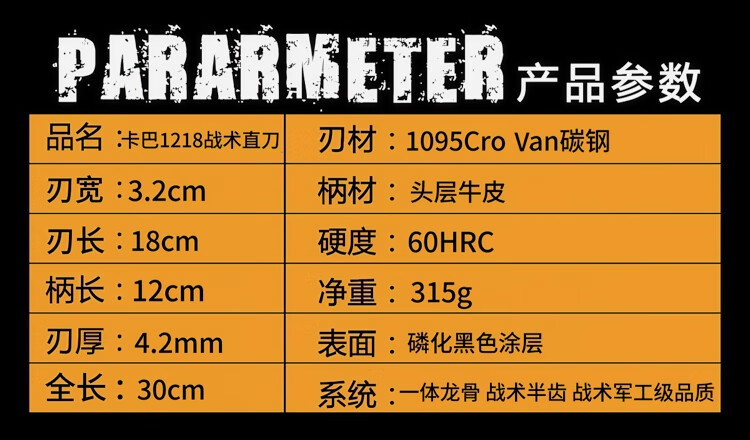 美国卡巴1218海军陆战队军士户外战术直刀高硬度1095CroVan碳钢刀 卡巴1217海军陆战队【战术全刃】 30cm-大于60°【赠战术牛皮刀套】