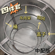 NAOISKEY 脑斯基镀锌板熏肉桶商用腊肉烟熏炉户外无烟烧烤圆形家用碳烤串便携式柴 4件套