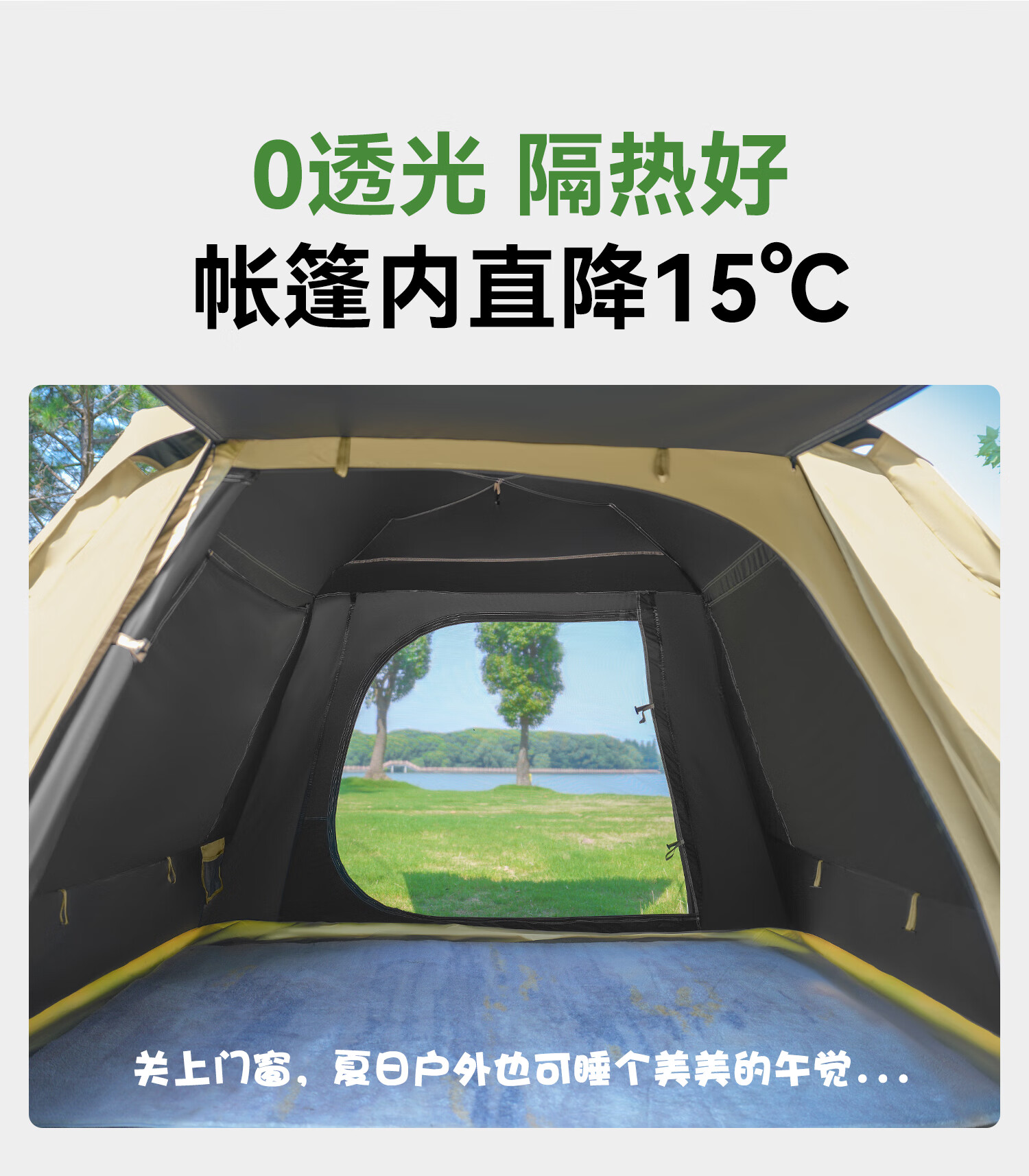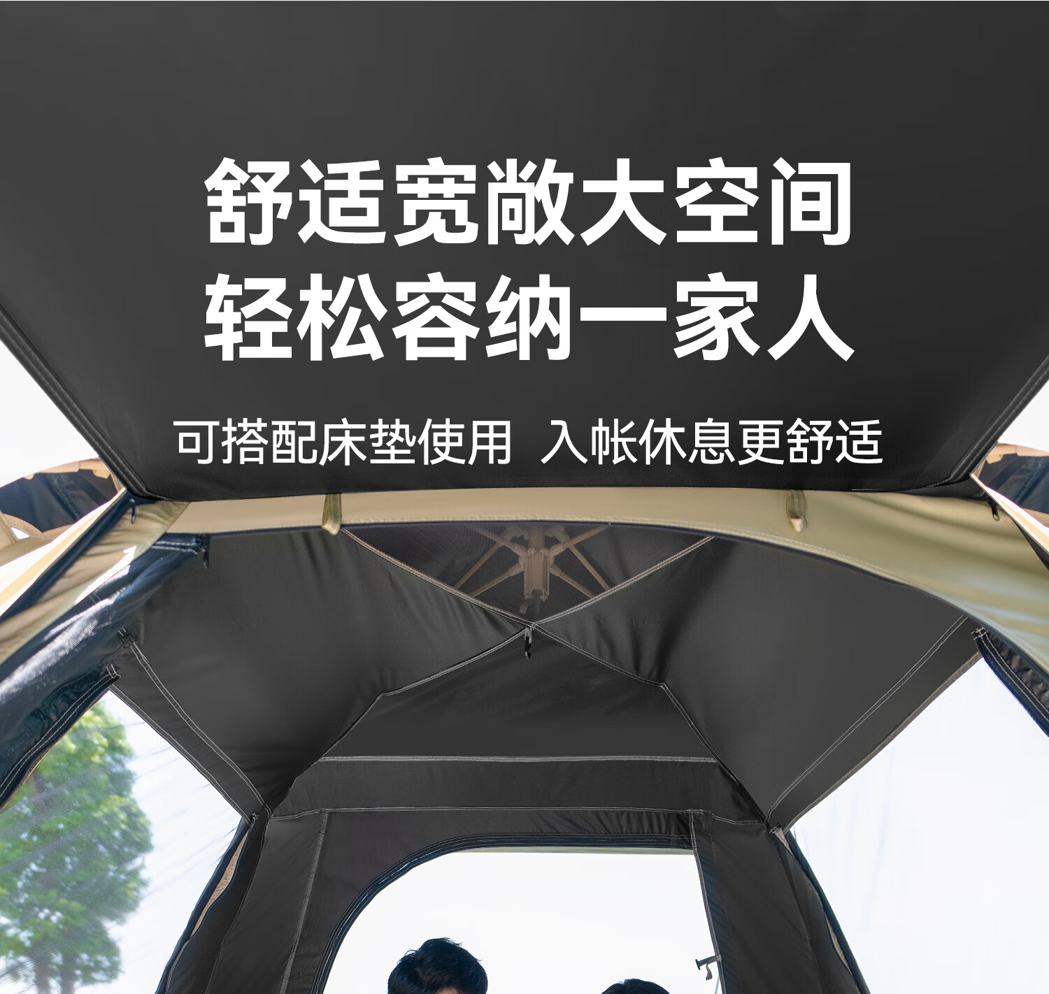 原始人帐篷户外折叠便捷式天幕一体自动露营防晒野外野营装备全套 【黑胶单帐篷.加大号】+防潮垫