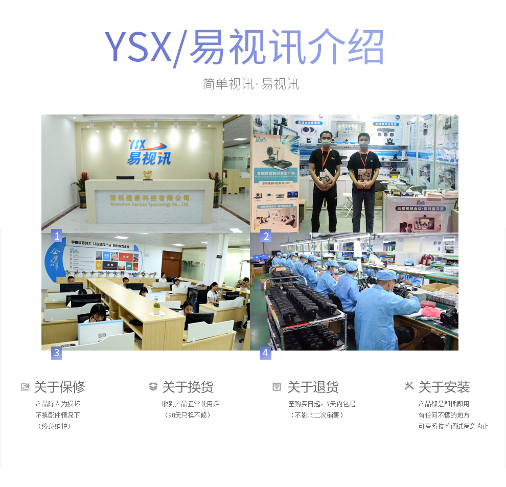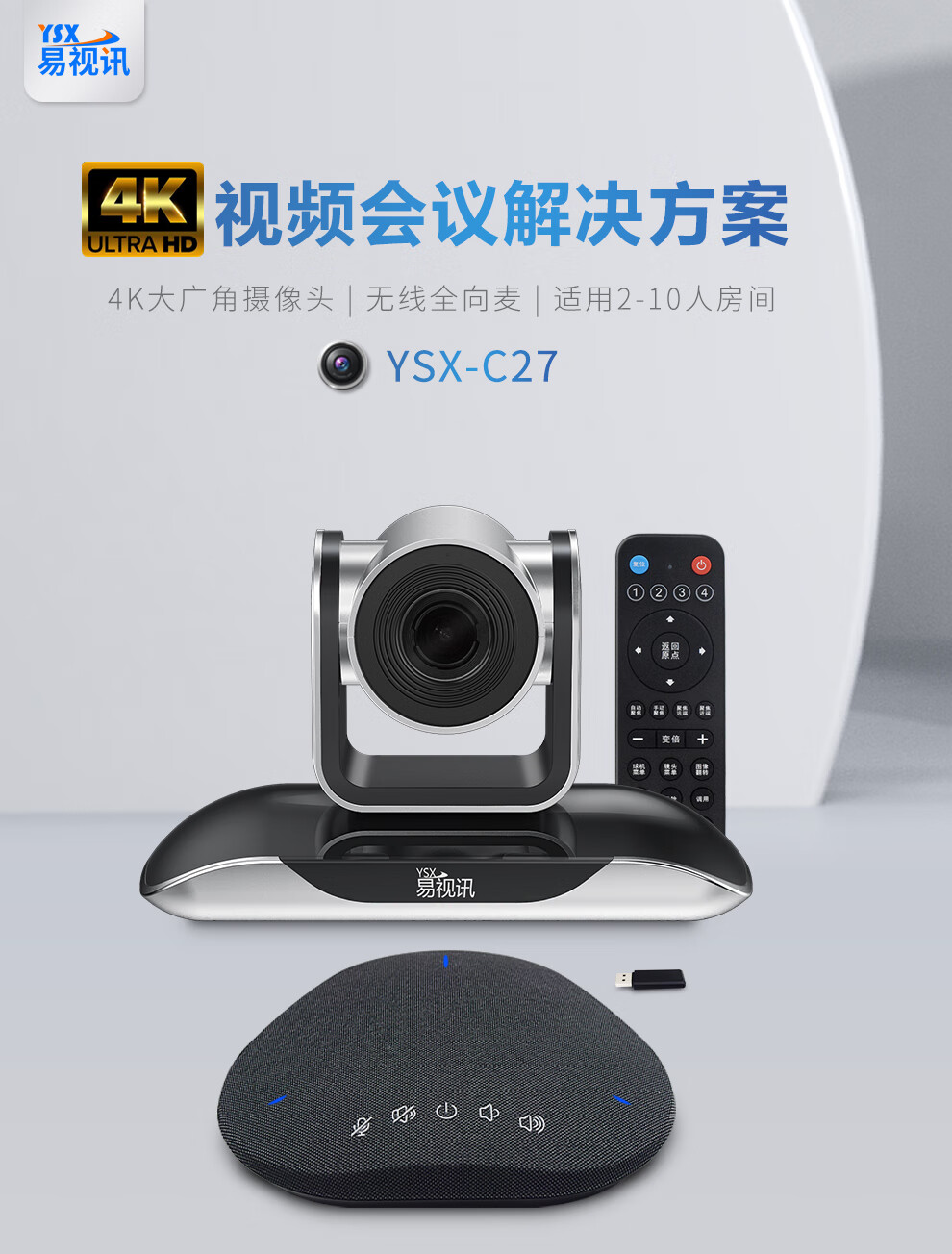 易视讯 中型视频会议室解决方案 适用于20-60㎡(无线全向麦克风+3倍变焦会议摄像头系统设备机)YSX-C27